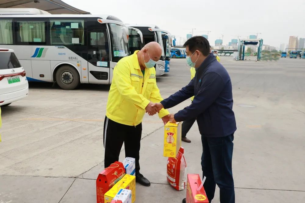 4月25日,明茂公司党总支书记、总经理袁军,副总经理刘东、副总经理、工会主席蒋月琴等一行来到江化北路充电站,看望慰问疫情期间做好转运车辆充电保障工作现结束集中隔离的李明、李金城两位员工,为他们送上明茂公司的亲切关怀。早在江化北路充电站封闭管理伊始,李明、李金城两人积极响应公司决策部署,主动请缨,投身于疫情防控转运车辆充电保障工作中。场站封闭管理一个月期间,他们全天候24小时轮流值班在岗。