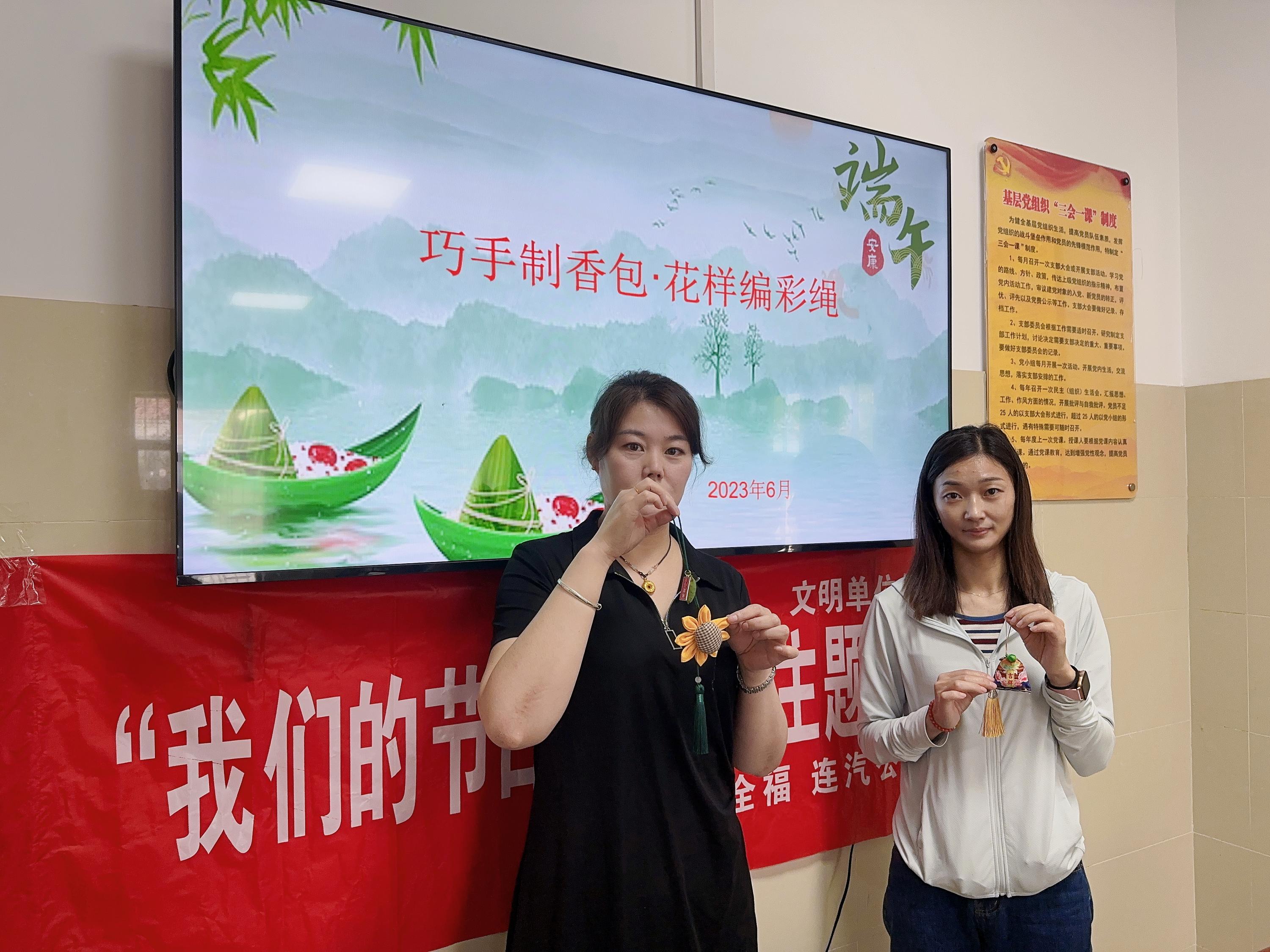 活动伊始,工作人员为大家准备好香包布料、艾草、丝线、挂饰等材料包,并介绍了端午节的由来、讲述了传统文化故事与端午习俗,让大家充分了解端午的民俗文化。通过学习,干部职工感受到传统文化魅力,增进了爱党、爱国情感。在做香包过程中,干部职工有条不紊地开始制作香包。一双双巧手,穿针引线、填充香料、打结收尾……每个细节都格外认真,大家纷纷把自己最美好的端午祝福缝入香包。清幽的艾草香气弥漫开来,一个个各式香包逐步完成,每个人的脸上都洋溢着笑容。在编五彩绳活动中,干部职工通过结、绕、缠、编、抽等手法,细心编织,再缀上彩色小粽子挂饰,一条漂亮的端午节彩绳便完工了。欢乐祥和的气氛洋溢在整个活动现场。