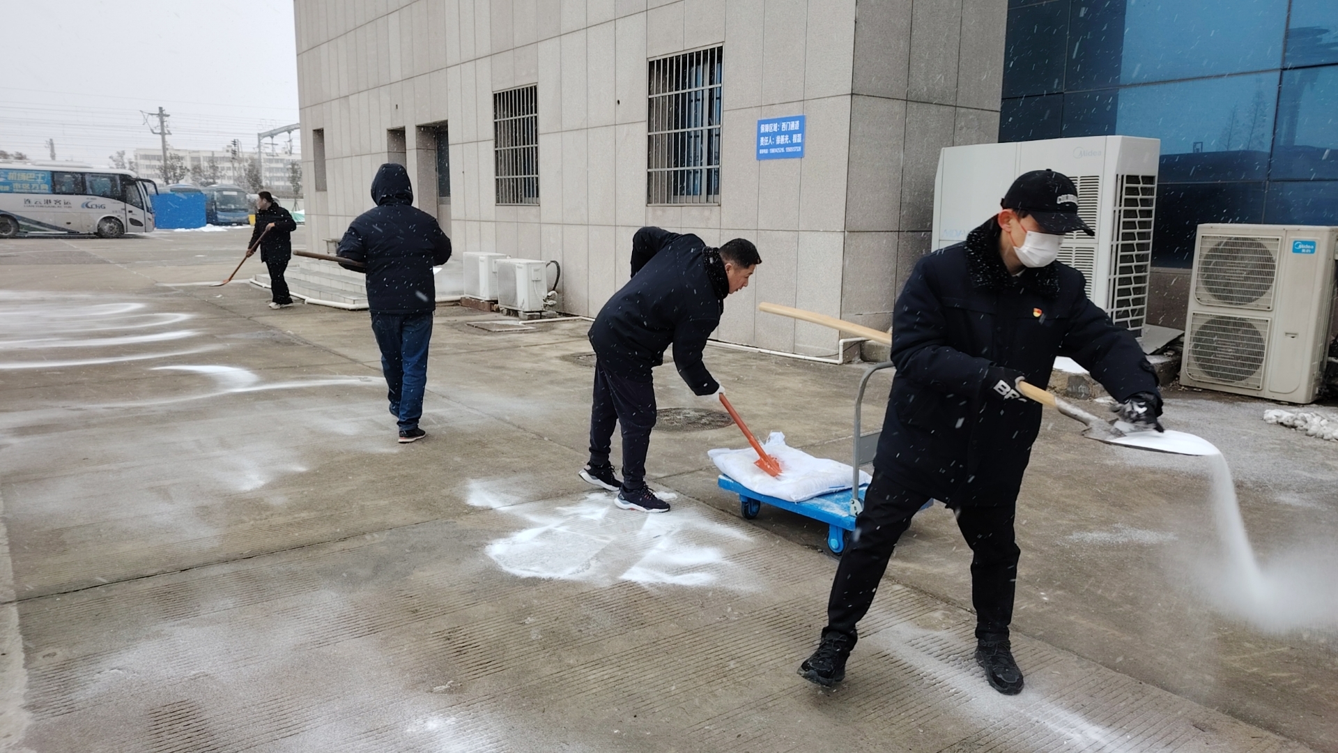 全体职工迅速集结到位,分别进入站前广场、进站口、出站口、下客区、车辆通行区域进行不间断清扫,保持地面无积雪。在售票厅、出站口等旅客通行较密集区域铺设防滑草垫,防止旅客滑倒摔伤;在车辆通行区域撒盐除雪,防冻防滑,保障运输生产安全稳定。