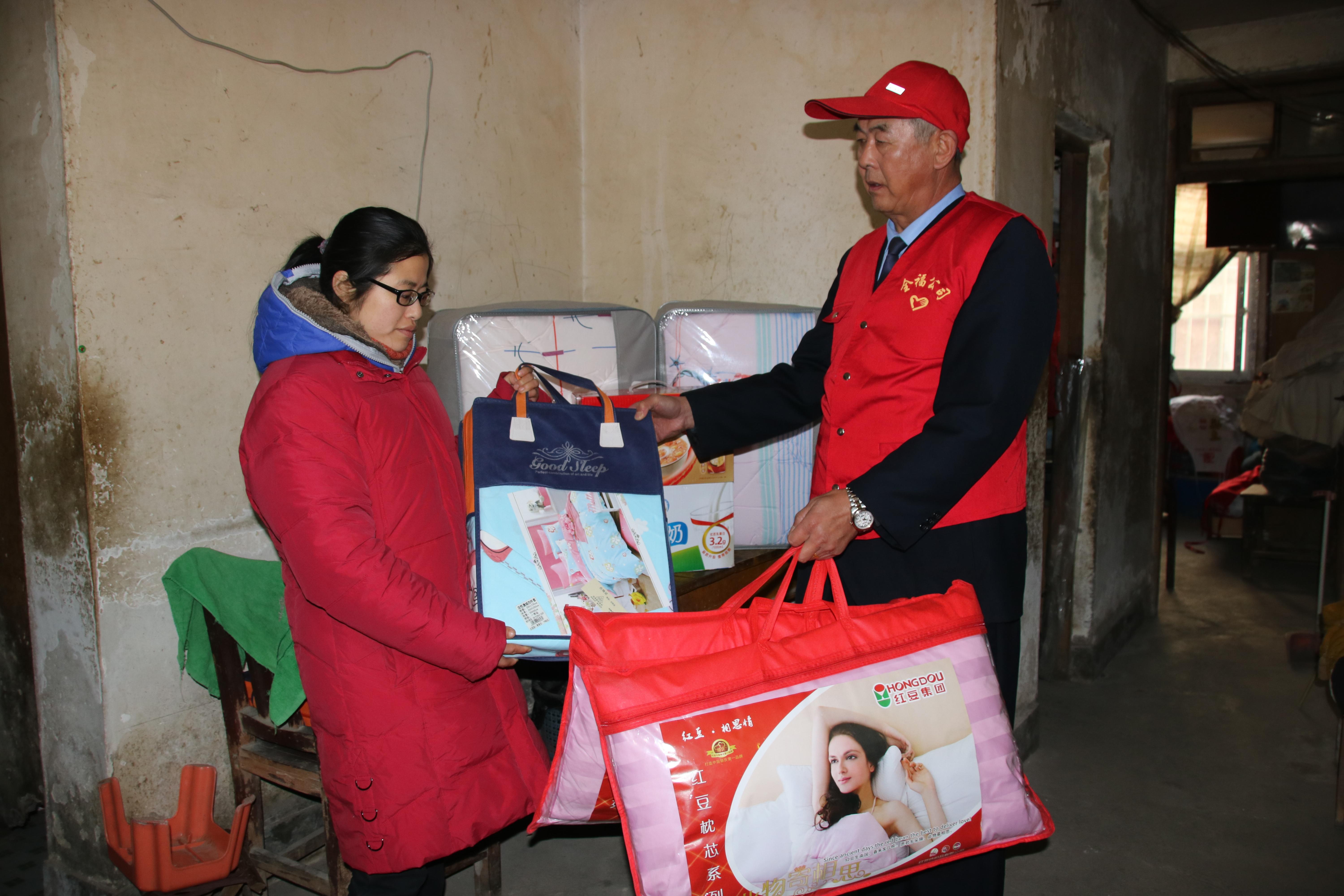 全福公司“党员的士”志愿者们得知萌萌和铭铭情况后,深深地感到两个女孩生活的艰辛,为了让她们过上一个温暖快乐的春节,2月6日上午,“党员的士”志愿者孙明福、谭兆亮带着全体队员的浓浓爱心来到萌萌和铭铭家里为她俩送上两床新棉被、两套床上四件套,两套新枕头以及牛奶和八宝粥,并为她俩送去关怀和美好祝福。
