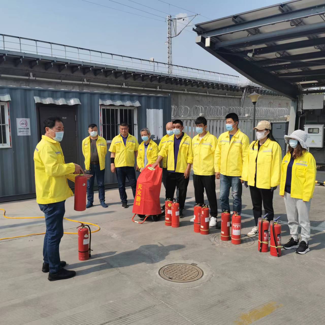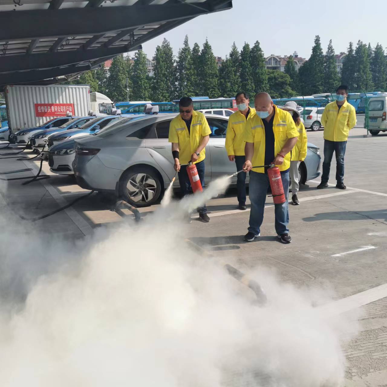 夏季高温季节来临,为加强职工防火意识,提升职工应急处置突发事件的能力水平,5月21日下午,明茂公司西区充电班组组织充电工在江化北路充电站开展消防演练活动。