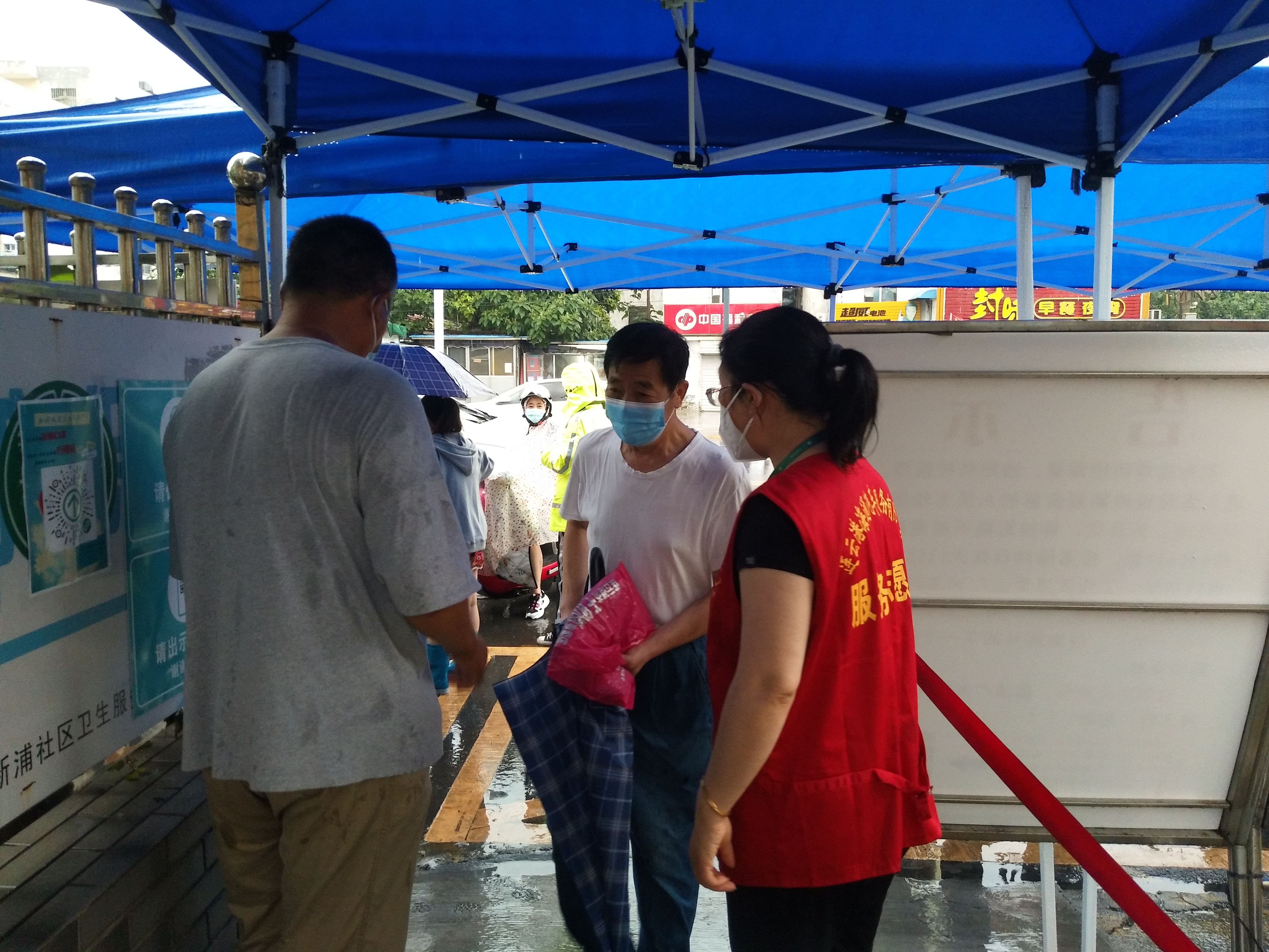 新浦社区卫生服务中心工作现场,市民大部分都能够自觉出示两码,积极配合志愿者查验两码,前来打疫苗的市民有序拿号排队,有的病人需要在门卫处登记,在志愿者的帮助下都能够有序进行,由于当天上午持续暴雨,志愿者对年老需要帮助的市民积极给与帮助。虽然雨很大,志愿者衣服都被雨淋湿了,大家觉得能帮助到需要帮助的人很有成就感,也亲身体会到社区工作人员的辛苦,纷纷表示要经常性参与志愿服务活动。