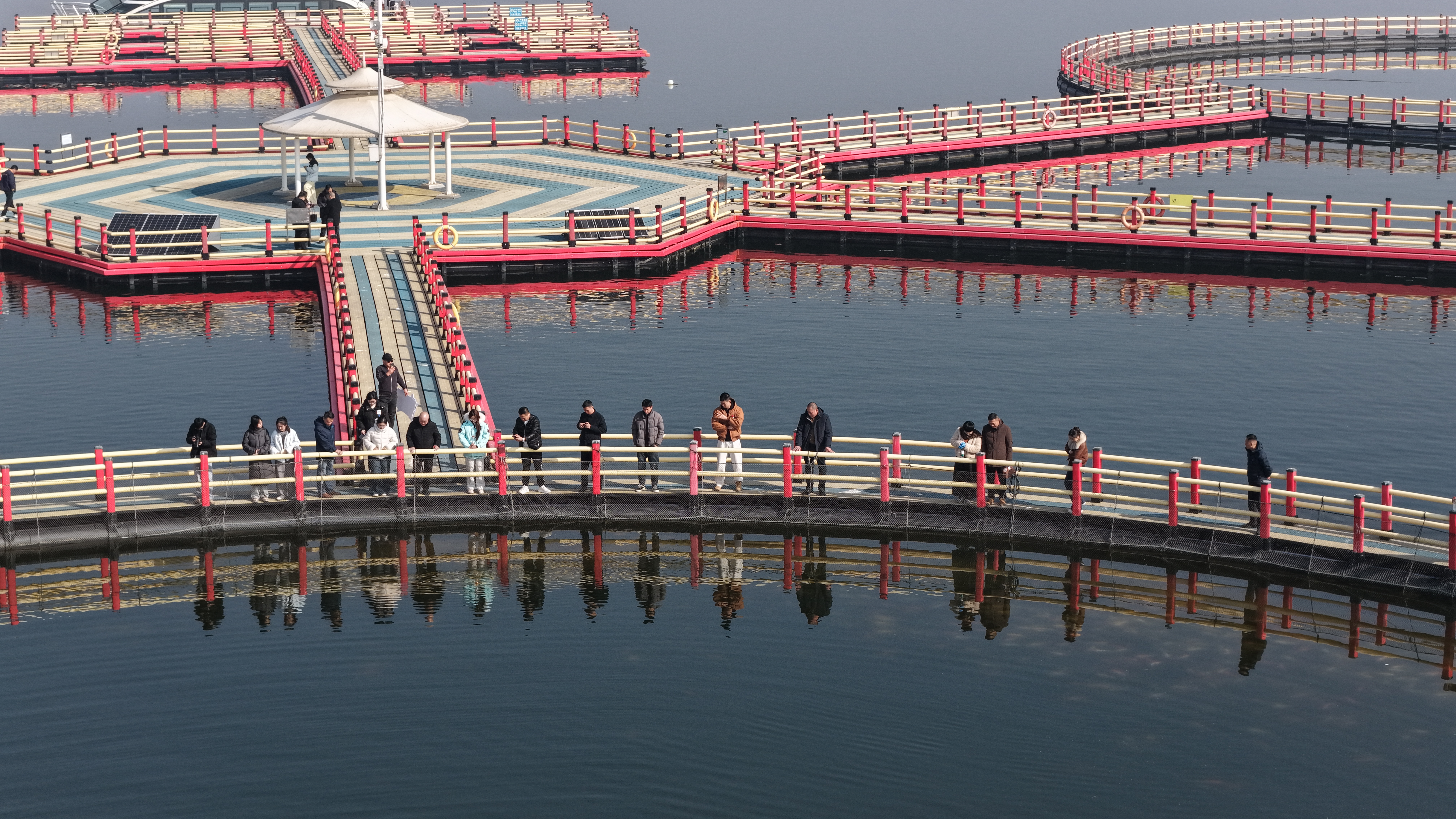 春风拂面,水天一色。嘉宾乘坐游艇缓缓靠近五环网箱,晴空之下、碧波之中,成群的有机大鱼悠然游弋,不时跃出水面,激起粼粼波光,展现出蓬勃的生命力,引得嘉宾纷纷驻足拍摄。登上五环网箱平台,大家得以零距离观察这些“水中珍宝”。养殖基地负责人现场介绍:“石梁河有机大鱼坚持人放天养、全程有机追溯,已连续两年通过国家有机产品认证。这片活水,就是最好的品质保证。”