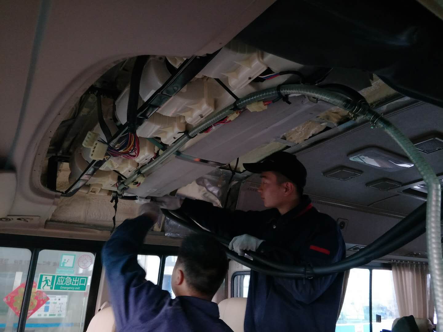 3月22日,公交集团机务技术事业部大浦分厂接受了花果山风景区的10台旅游巴士空调设计整改的委托,由于新改装的空调外形及尺寸与新车出厂时安装的空调尺寸差距大,整改的空调需重新设计安装位置,空调线路也需重新分布。大浦分厂组织钣金组、电工组共同设计空调的整改方案,空调机组安装后必须安全牢固可靠,在整改安装过程中,多次更改设计方案,第一台车整改用了6天的时间,确定整改方案以后,每台空调整改时间只需三天即可完成。