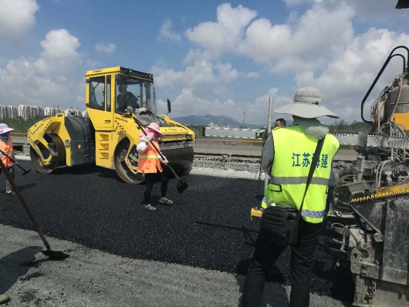 近日来,烈日炎炎、热浪滚滚,江苏海建公司员工顶着高温天气,依然奋战在G204绣针大桥河项目部施工一线,进行沥青摊铺工作。随着最后一车沥青混合料抵达现场碾压成型,G204绣针河大桥沥青面层摊铺工作顺利全部完成。