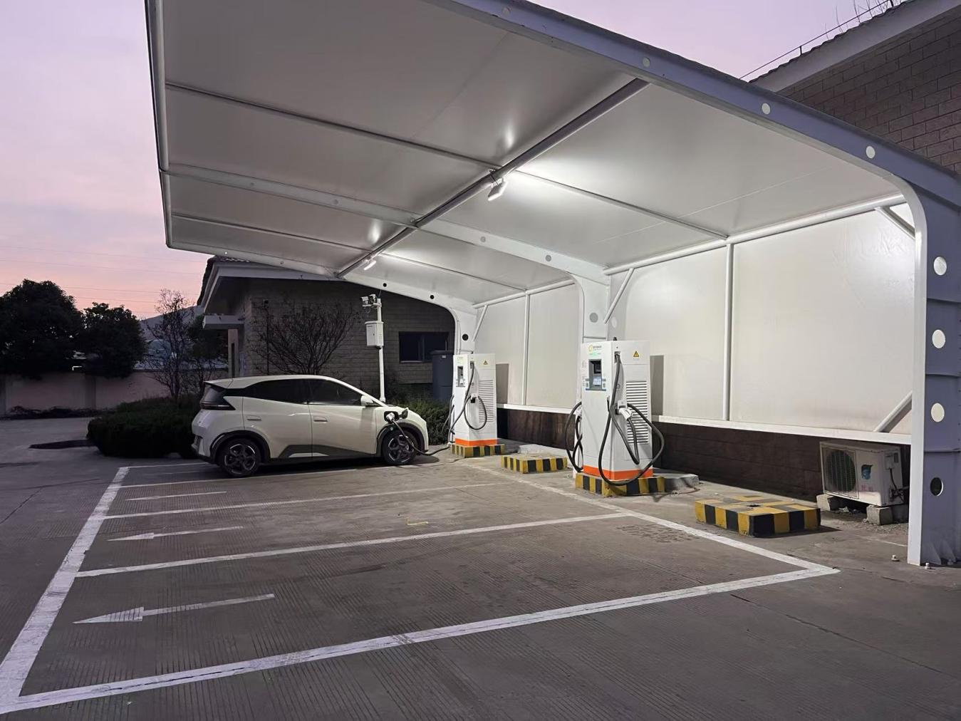 在国家 “碳达峰、碳中和” 战略目标的引领以及节能减排政策的号召下,为推动绿色低碳发展,满足不断增长的电动汽车充电需求,明茂公司将电动汽车充电设施升级改造项目纳入 “新基建” 工程名单。12月17日,明茂公司为连云国道服务区充电桩进行了换新升级,由原来4台7kW慢充升级为2台60kw快速充电桩,可同时满足4辆车同时充电。