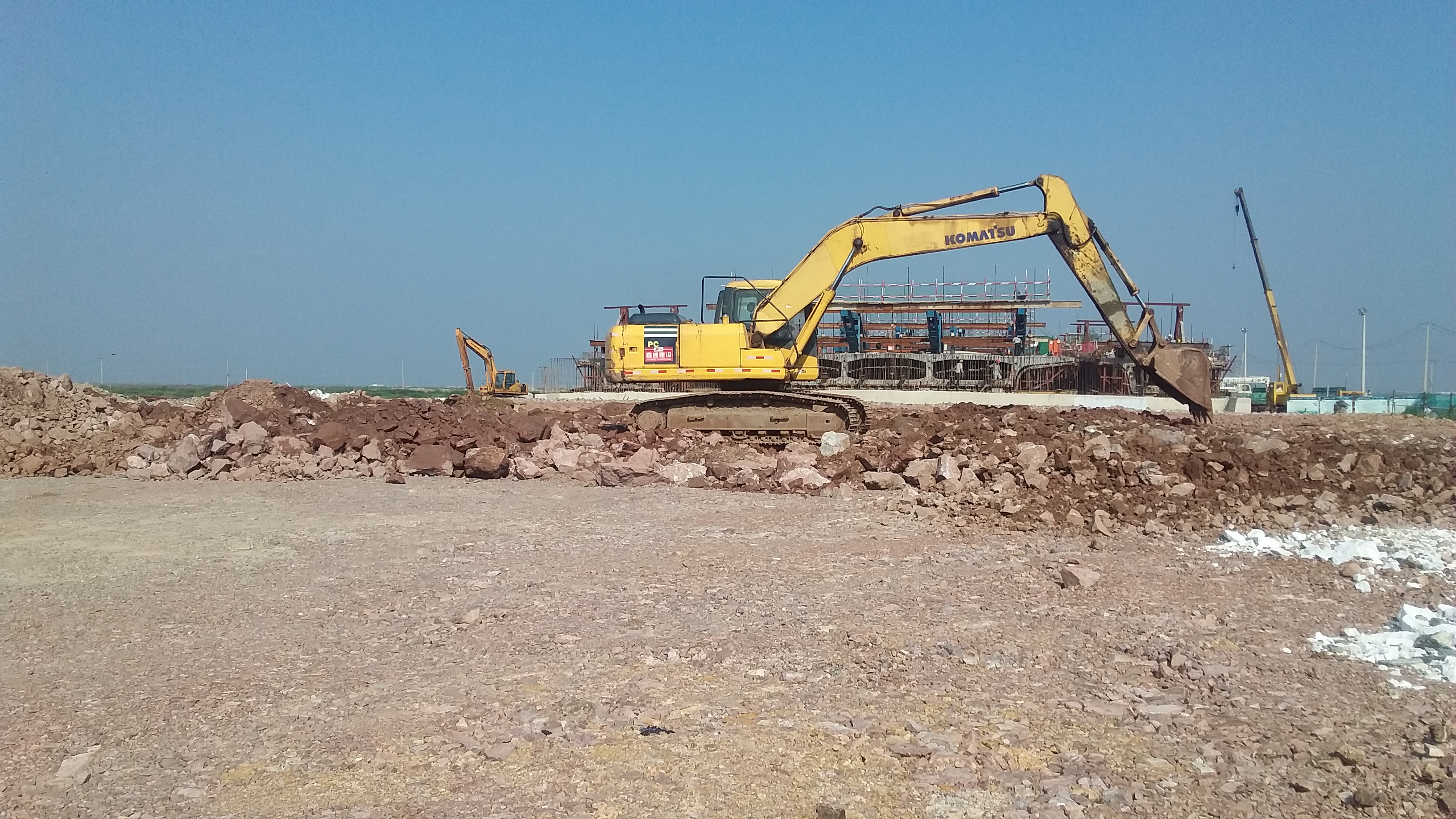 在做好夏季防高温工作的同时,项目部还注意夏季防台风、防暴雨和防雷击等工作,安排人员密切关注天气情况。同时现场准备了两台挖掘机、水泵等应急器械,如发现水位临近警戒线,可立即使用挖掘机开挖施工现场便道,确保水位保持在警戒线以下。