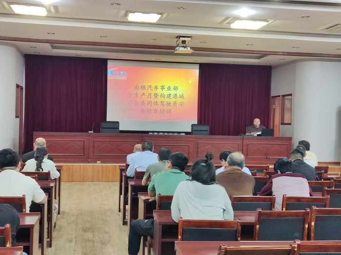 为总结分析当前安全生产形势,全面贯彻落实集团关于2024年安全生产月活动要求,结合汽服公司出租汽车事业部实际情况进行再部署再落实,5月25日上午,在交通技工学校大会议室召开“构建港城行车安全共同体”安全生产月专题动员会议,会议采取线下与线上两种模式开展,由出租汽车事业部各运营部安全管理人员主讲,各分公司、安全科管理人员与驾驶员参加会议。
