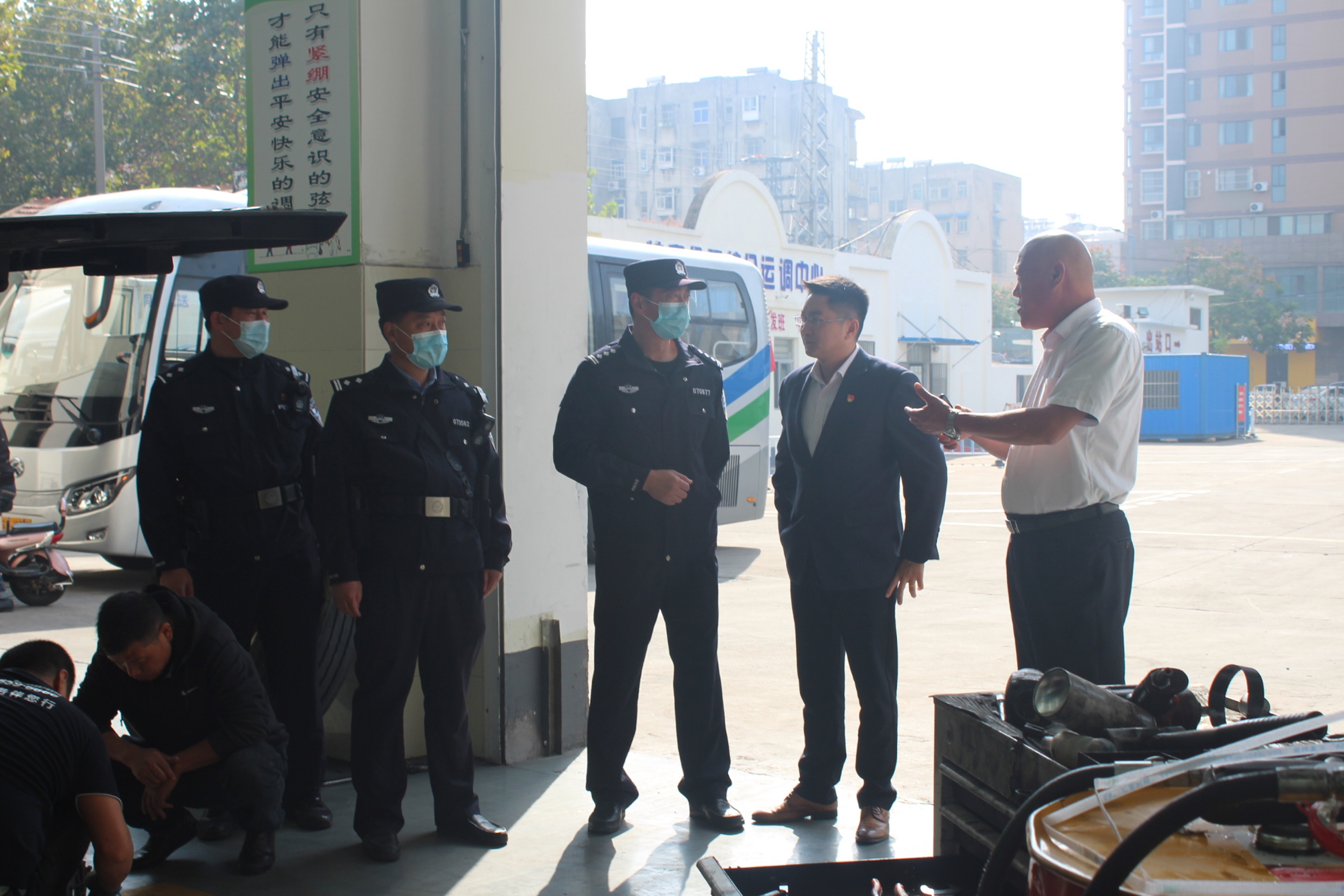 10月21日上午,连云港市公安公交分局副局长周爱军一行,以“四不二直”的检查方式到连汽修理公司检查安保维稳工作,修理公司安全负责人参与检查。