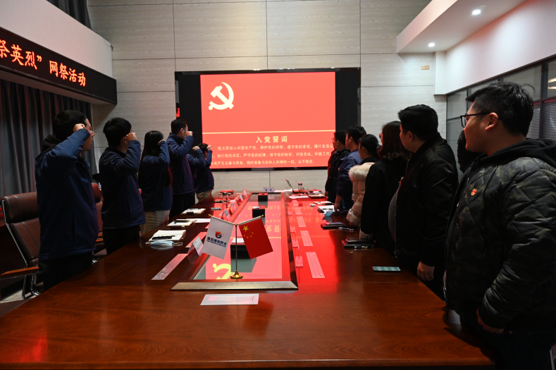 公司党支部委员陈琛带领党员们重温入党誓词,之后通过网上祭祀页面填写了献词,点击祭扫、献花、留言等不同活动选项,完成祭扫。最后,为表达全国各族人民对抗击新冠肺炎疫情斗争牺牲烈士和逝世同胞的深切哀悼,全体人员默哀三分钟。
