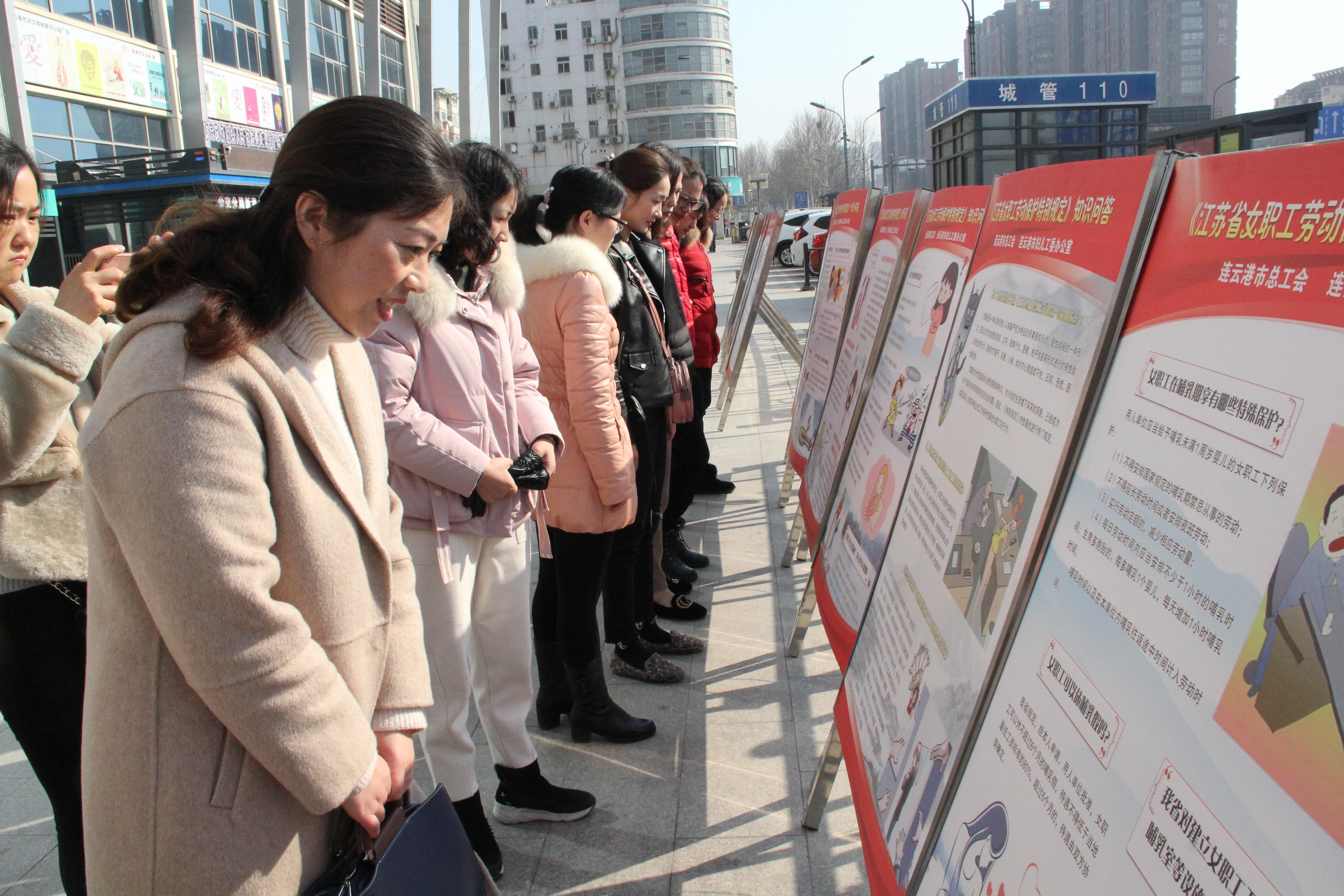 为突出“三八节”主题活动,进一步推进《江苏省女职工劳动保护特别规定》的贯彻执行,根据市总工会和交控集团统一部署安排,3月14日上午,汽服公司组织20余名女职工到新浦汽车总站大厅开展参观巡回图版展览活动。