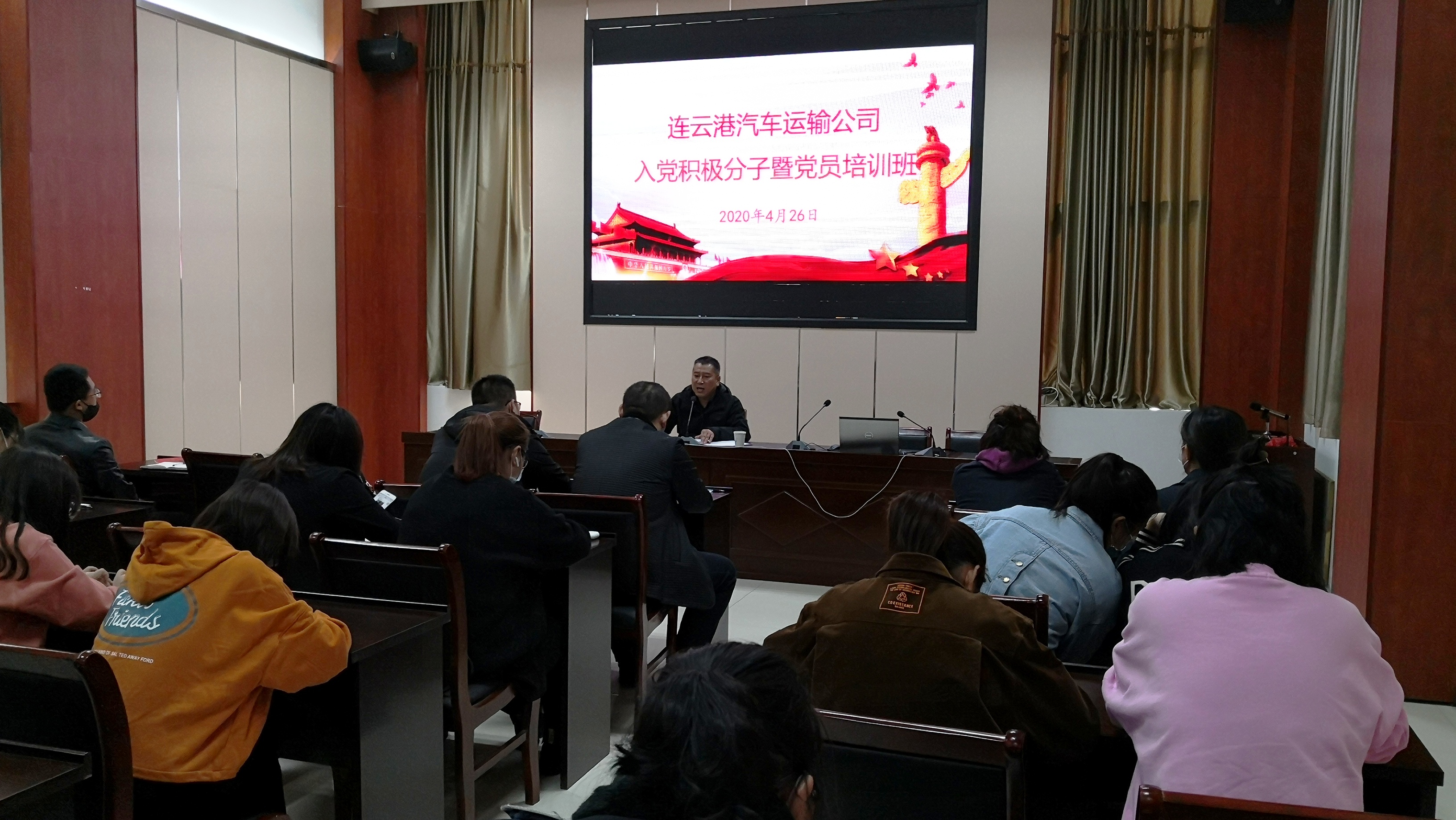 4月26日,汽车公司2020年度入党积极分子及党员培训班在新浦汽车站二楼党员活动室正式开班,共有来自公司权属单位的30名入党积极分子及部分党员代表参加了此次培训。