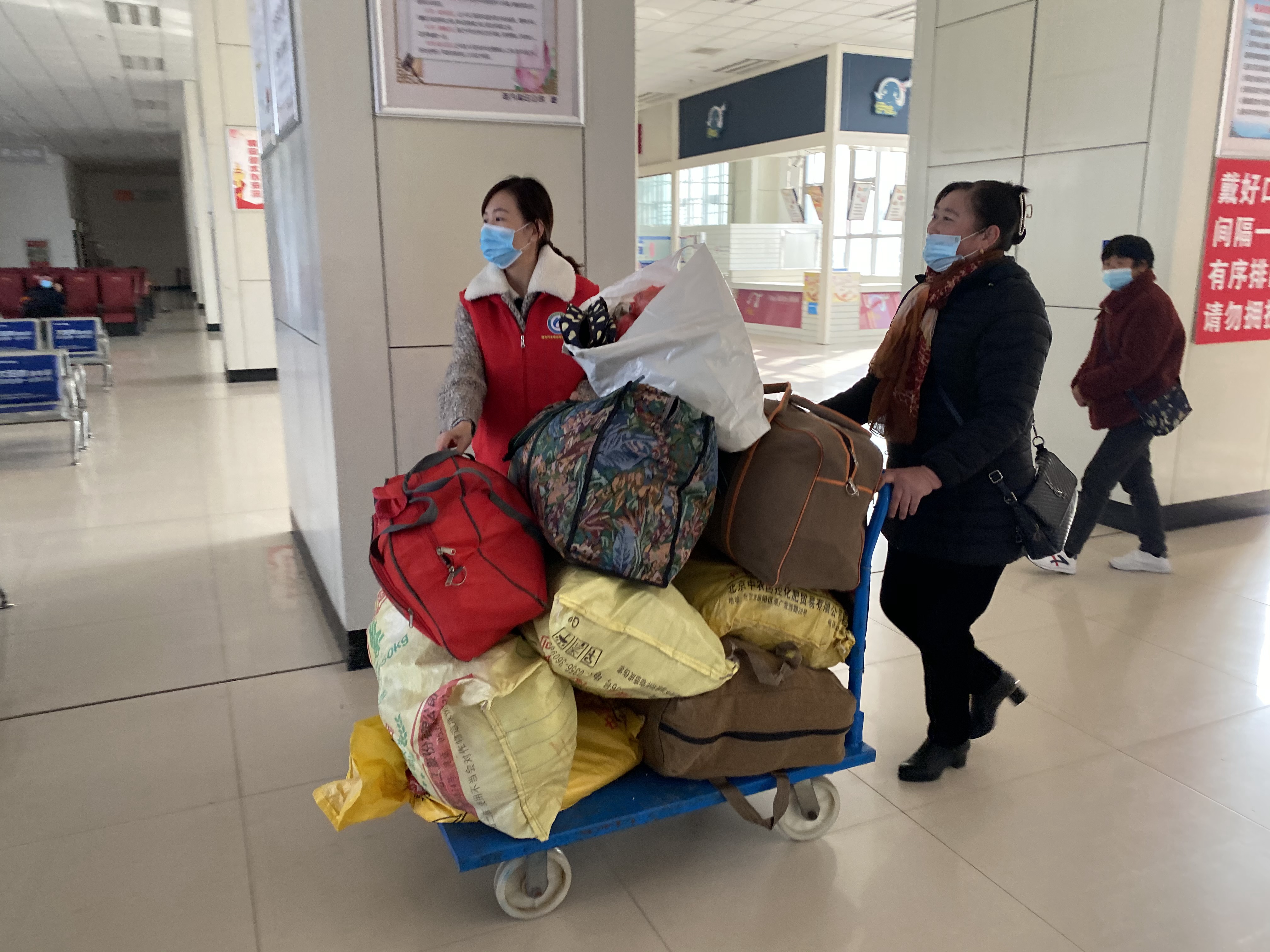 话音刚落,张莹就推来“雷锋车”,帮着这位阿姨把大包小包的行李全部抬到了小车上。
