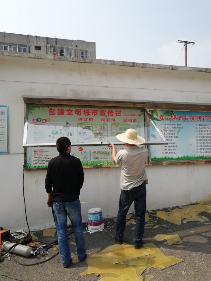 根据总公司创文领导小组检查要求,航务公司对码头围墙墙面及宣传图板,宣传橱窗玻璃等进行整理粉刷和更新,共更新创文宣传图板六块,橱窗玻璃两块,墙面整理粉刷218平方。本次整理更新工作,亮化了环境,提升了创文活动力度,让航务公司的整体形象焕然一新。