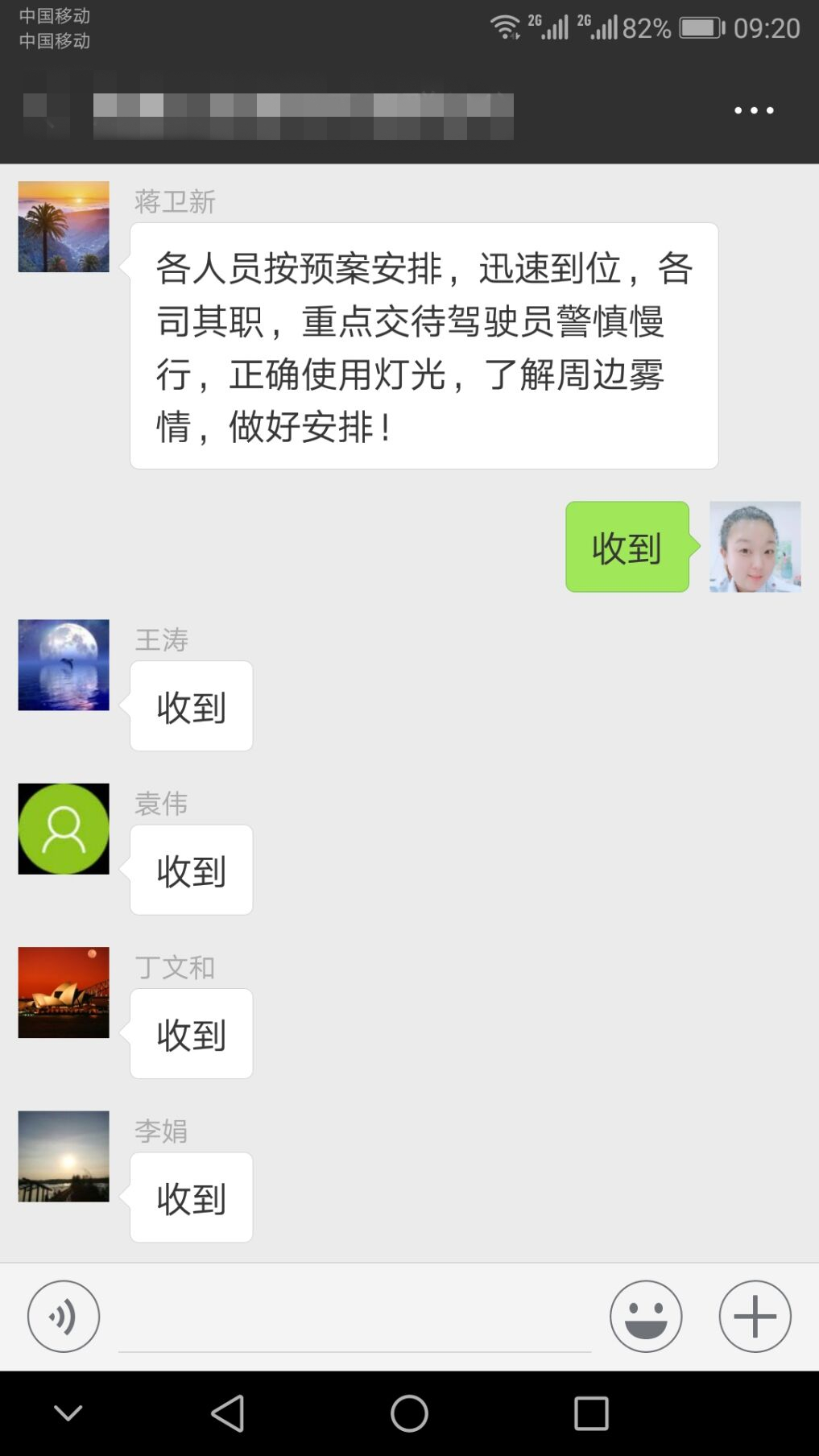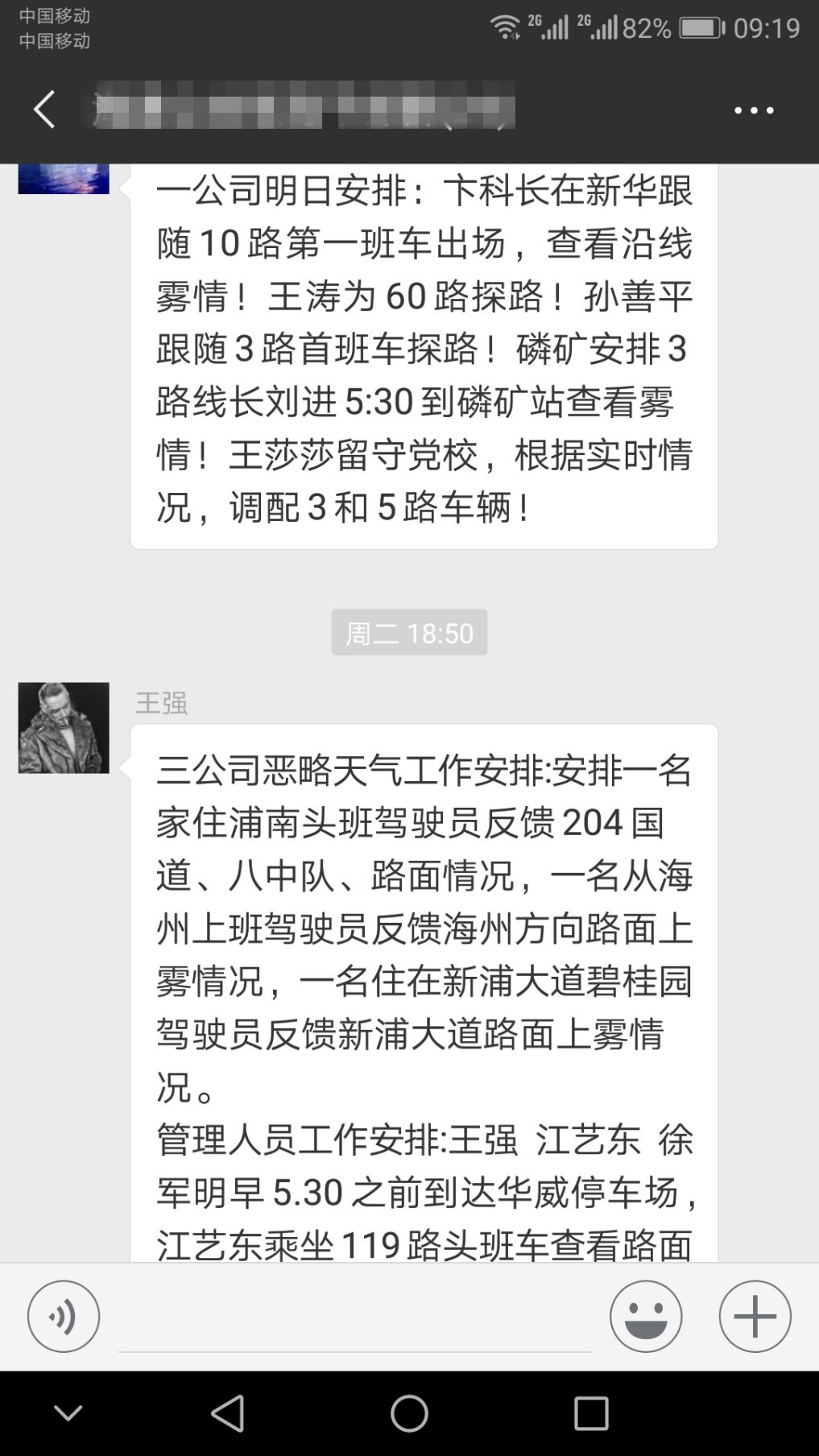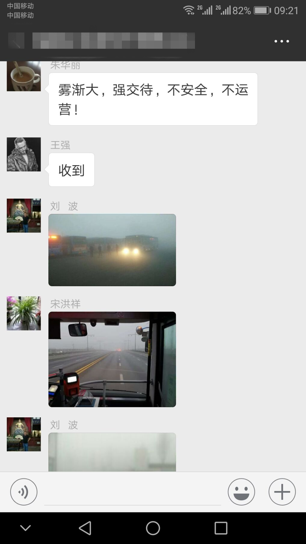 11月27日凌晨,大雾如期而至,公交集团海通公交公司微信群早已信息不断,管理人员全部提前到岗,进入“备战状态”。朱华丽强调:一是各分公司要加强工作联动性,做到路况信息资源共享。二是期间出场车辆定要加强安全交待,做到不安全,不生产。三是在天气条件转好的情况下也不能放松安全这根弦,要全方位提升驾驶员安全预防意识。四是大雾恶劣天气从11月27日至11月30日,全体管理人员要做好打“持久战”的准备,切实做好冬季恶劣天气安全行车无事故工作。