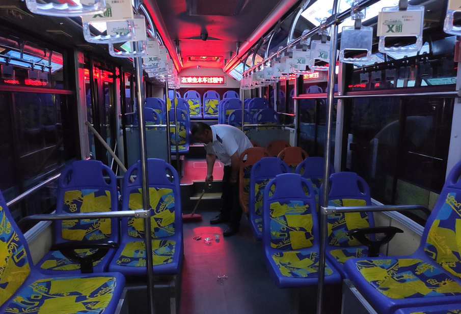 夏季炎热,经过一整天的暴晒,路上的灰尘全都吸附在公交车的车身上,车厢里还有粗心的乘客落下的背包、手机亦或是钱包,驾驶员师傅们会从里到外清理车辆卫生,不仅仅是创文工作要求,更想让乘客拥有一个舒适的乘车环境。对了,把东西落在公交车的乘客也不用担心,只要驾驶员捡到了你丢失的东西,一定会妥善保管,等你前来认领