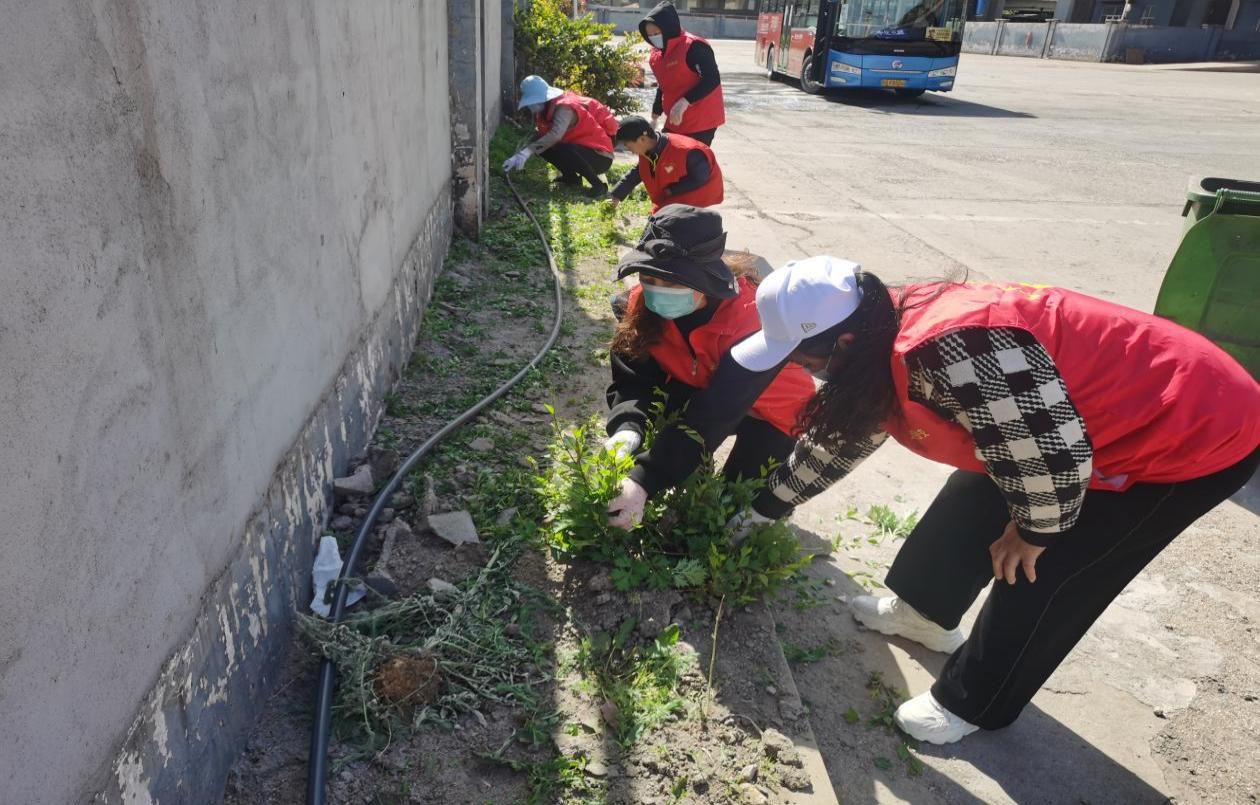 员工们统一身穿红色志愿者红马甲,借助铁锨、扫帚、簸箕等工具,对东、西城分公司场站的白色垃圾和杂草进行了一次全面、彻底的清理。大家齐心协力、干劲十足,发扬不怕苦、不怕累的精神,不放过任何一处卫生死角。正值立夏来临,在烈日炎炎下,随处可见一幕幕挥汗如雨,热火朝天的劳动场面。全体人员热情高涨,汗流浃背,经过二个多小时的辛勤劳动,场站环境变得焕然一新。