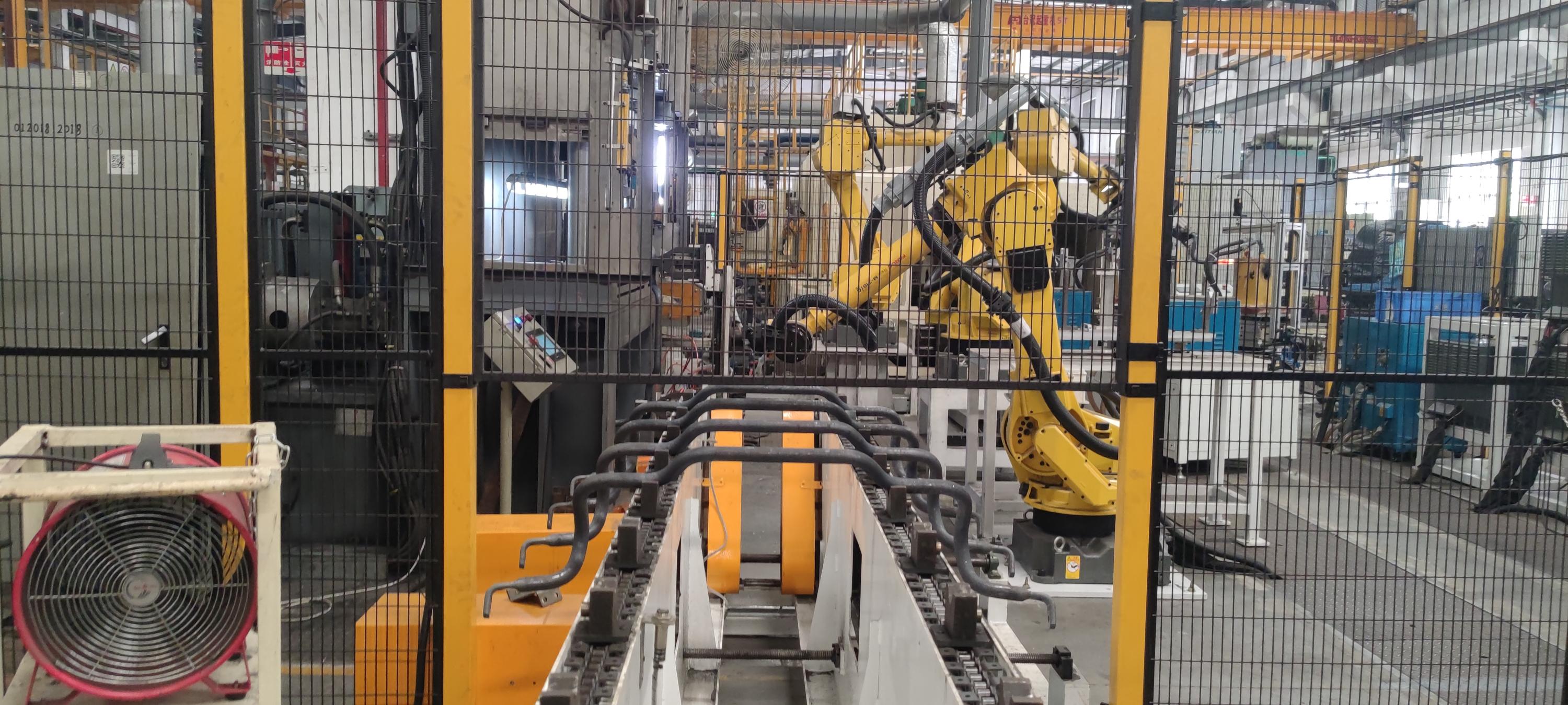 日前,海宏科技为广州华德汽车弹簧有限公司量身打造的稳定杆上下料产线成功通过验收。该生产线通过机器人完成产品搬运,减少人工作业,稼动率达到90%,大大提升自动化水平。