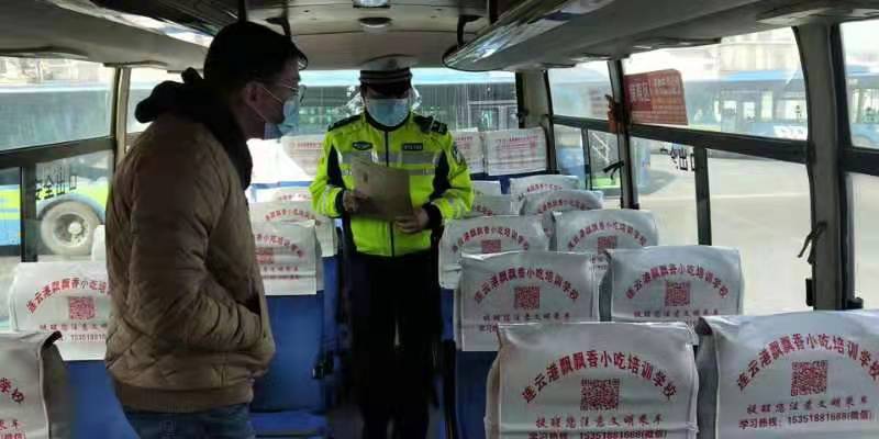 为进一步加强客运企业及车辆源头管理,有效预防和减少道路交通事故发生,确保春运工作有效开展,2月5日,海州区交巡警三大队民警深入海州客运站排查车辆隐患,开展道路交通安全宣传与检查工作。
