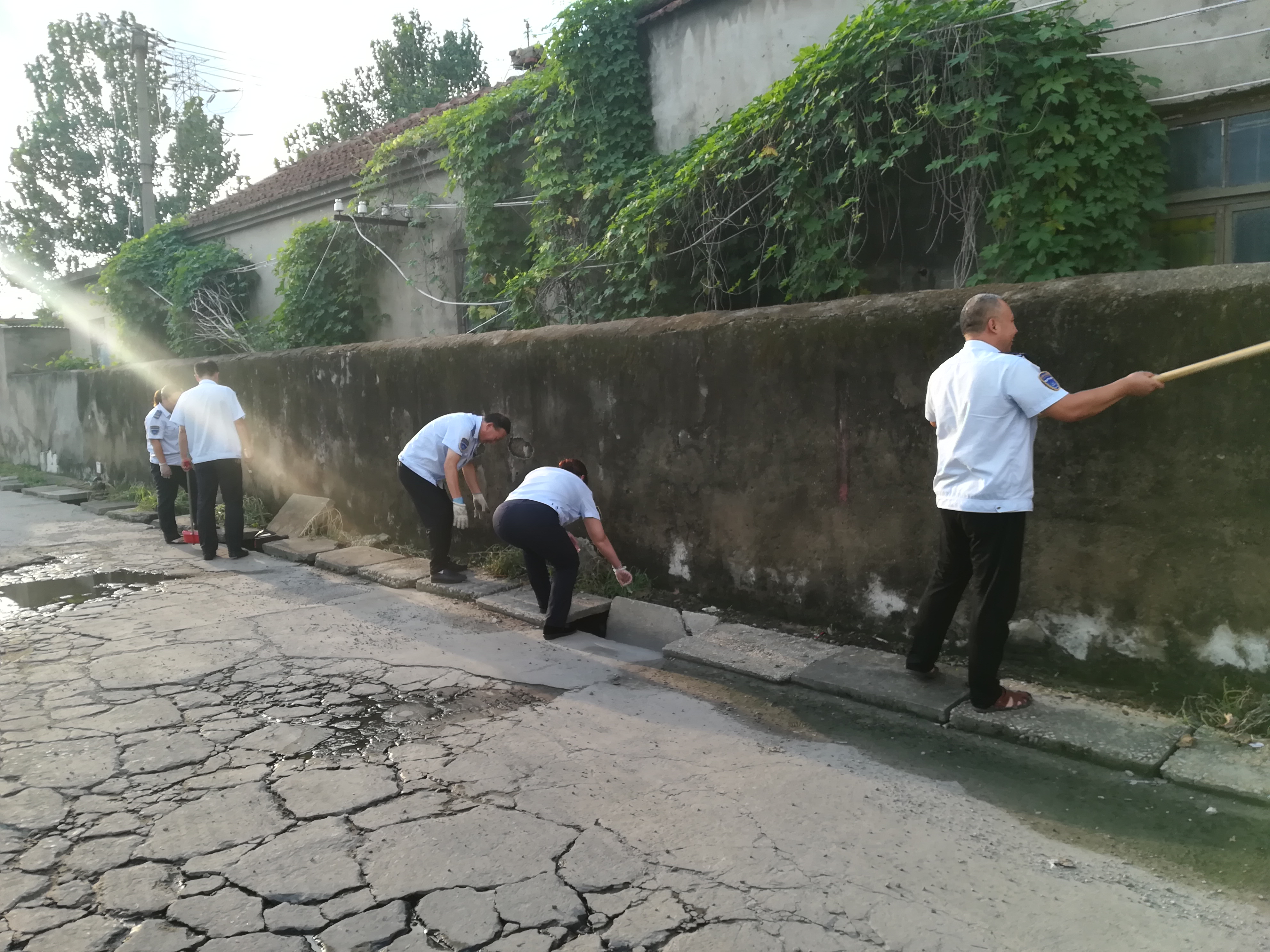 尽管烈日当空,汗水浸湿了衣服,但是工作人员依然干劲十足,认真专注地投入到清扫工作中。大家分工协作,有的手拿铁铲铲除杂草、淤泥,有的弯腰徒手拔除地上、砖缝里的杂草,有的则将杂草倒至垃圾桶内清理运走。虽然杂草丛生,加之天气干燥,泥土坚硬,给杂草清理带来很大难度,但大家仍然情绪高涨,不怕苦、不怕累,丝毫没有畏难情绪。经过2个多小时的“奋战”,杂草得以有效清理,环境卫生得到了明显改善,整个站场变得干净、整洁了许多。