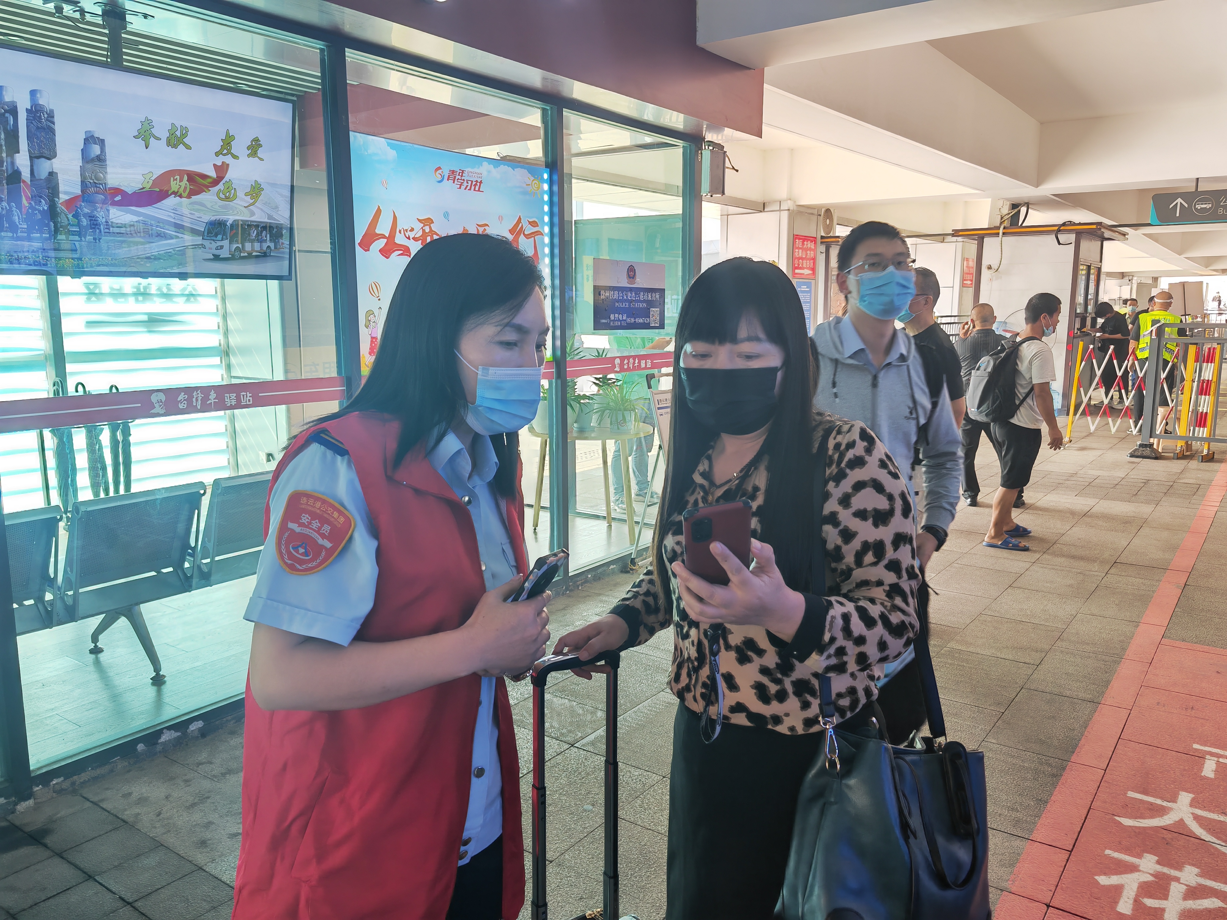 早上9点左右开始,出站客流呈上升趋势。公交事业一部分别安排管理人员及与 “雷锋车同行”旅游示范线驾驶员师傅们在出站口、咨询台及公交站台等客流集结点进行文明绿色出行引导。针对大专院校新生首次不知如何乘车、公交出行防控码首次如何登陆等问题,公交事业一部通过乘车方向提示牌、现场指导等形式高效引导乘客前往火车站B区乘坐公交车。