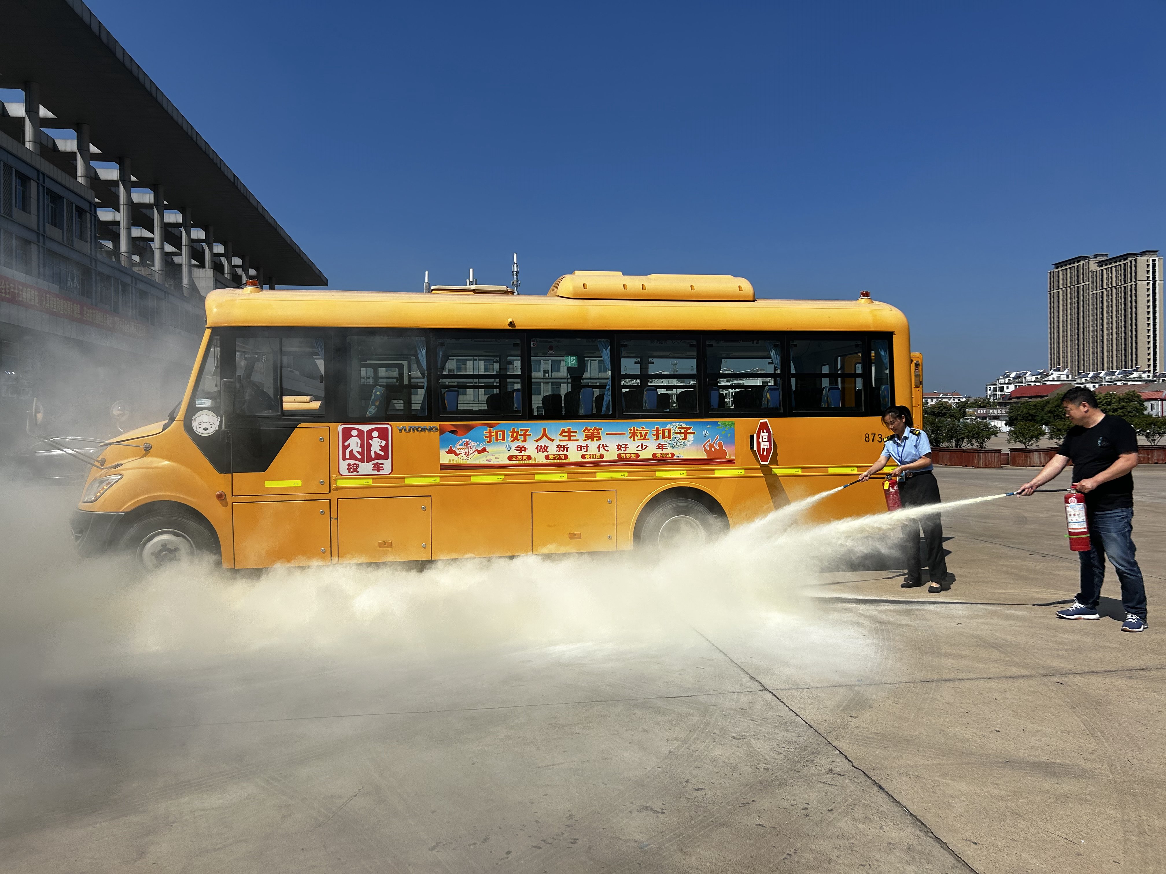 此次演练,有效提高了大家对火灾防控的重视程度,提升了火灾救护能力,保障了广大学生的出行安全。下一步,灌云欣达校车还将继续加大消防安全培训及演练工作,为强化校车运行安全管理工作奠定扎实基础。