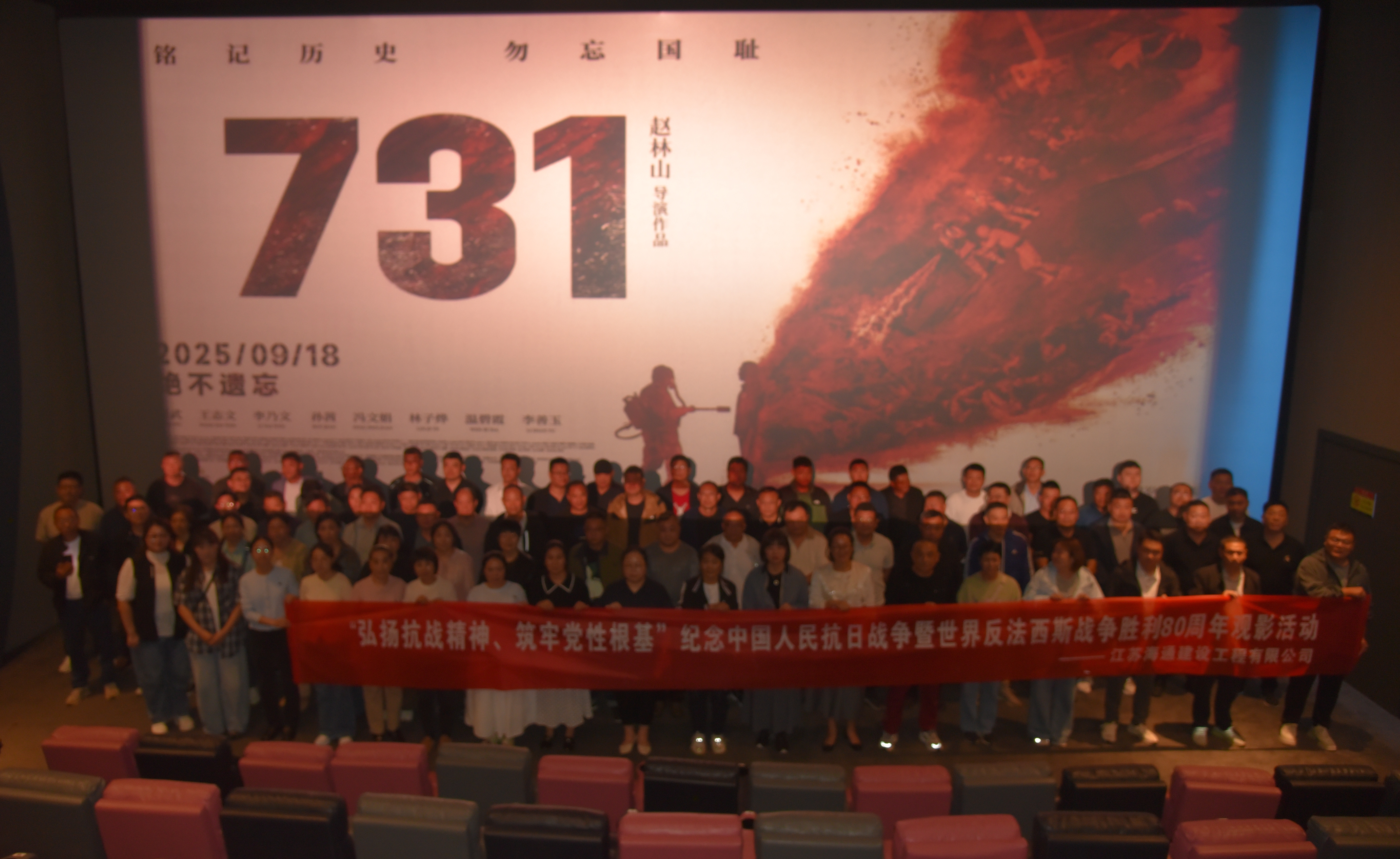 为深入学习贯彻习近平新时代中国特色社会主义思想,弘扬伟大抗战精神,激发党员干部及群众的爱国热情与奋斗精神,近日,海建公司组织开展纪念中国人民抗日战争暨世界反法西斯战争胜利80周年观影活动。110余名党员、入党积极分子及群众代表共同观看了历史题材电影《731》,在光影中重温历史,筑牢党性根基。