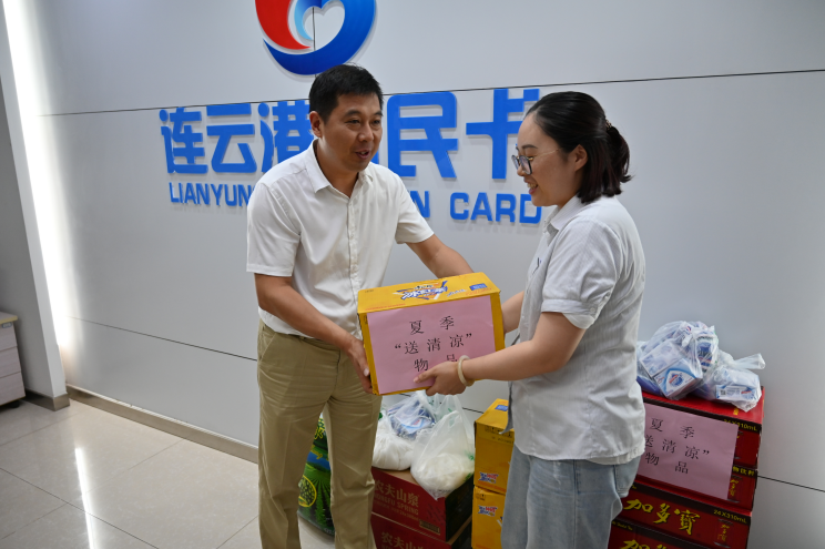 夏日炎炎,骄阳似火。为做好防暑降温工作,确保一线员工在高温酷暑季节的身体健康和工作安全,进一步增强凝聚力,市民卡公司组织开展夏季安康“三送”活动,市民卡公司总经理袁军、副总经理宁宇前往市民卡营业厅慰问了柜面客服人员,向他们送去清凉以及公司的关心。