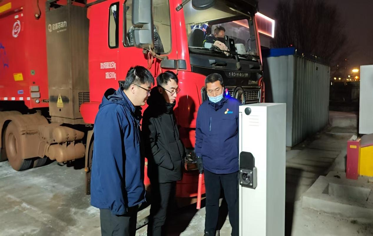 当晚,检查组成员先后抵达大港等重卡充电场站,重点对充电桩夜间运行状态、消防器材配置及应急物资储备情况进行逐项排查。时值寒冬,检查组特别关注了夜间低温环境下充电设备的运行稳定性及防冻措施落实情况。