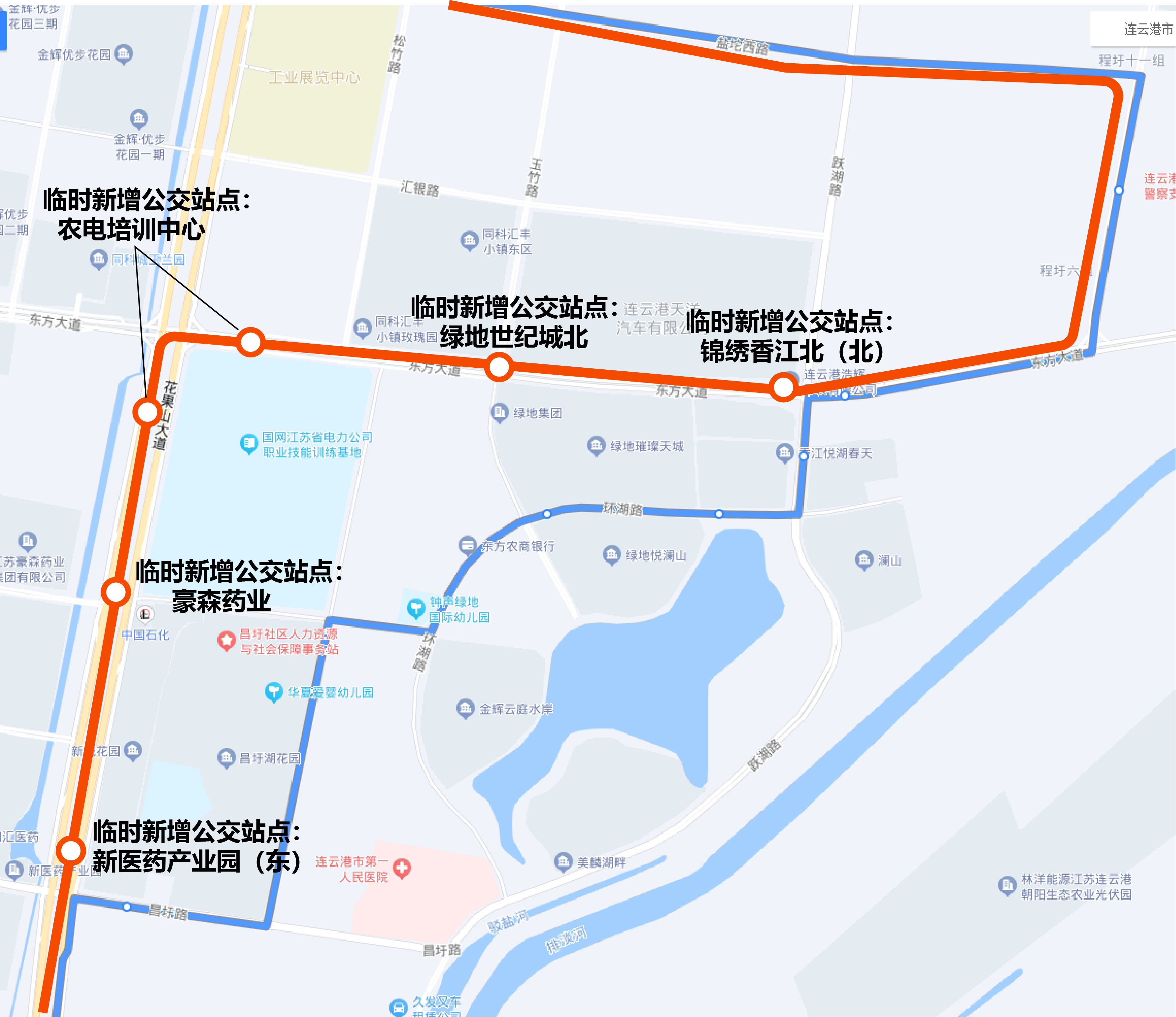 临时新增站点:新医药产业园(东)、豪森药业、农电培训中心、绿地世纪城北、锦绣香江北(北)