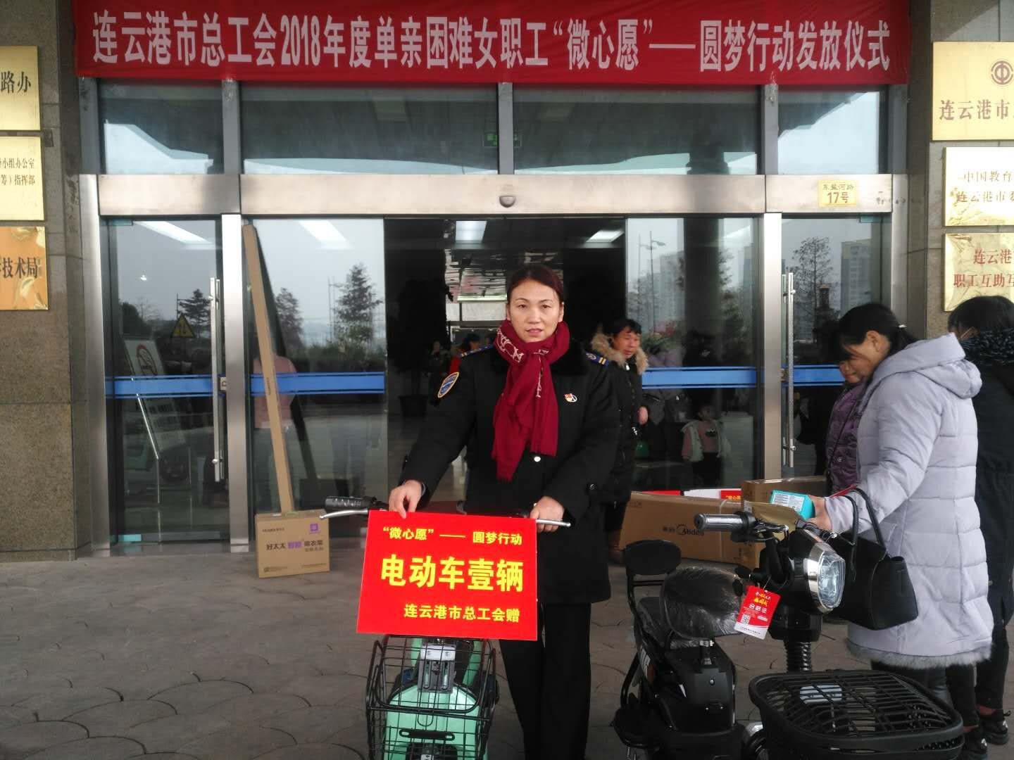 12月23日下午14:30分,公交集团公交事业一部单亲困难女职工徐健的微心愿终于实现了!“一辆价值1500元崭新的电动自行车”如愿以偿,她激动地红了眼眶,徐健表示:工会的“微心愿”圆梦行动,切实的为单亲困难女职工送来了温暖和关爱,解决了她的实际困难。以后,她将珍惜每一天,以乐观向上、饱满的激情,不屈的精神去拼搏、去奋斗,为公交事业的美好明天而努力。
