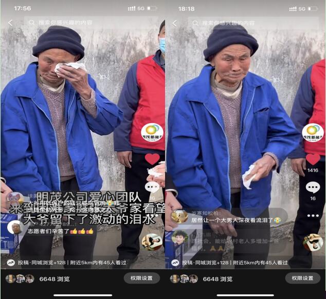 5月26日,公司“茂小明”爱心团队用手机记录的一段困难家庭张大爷因受到爱心团队帮扶而感动落泪的暖心视频,在抖音、微信视频号等平台上获得广大网友点赞。