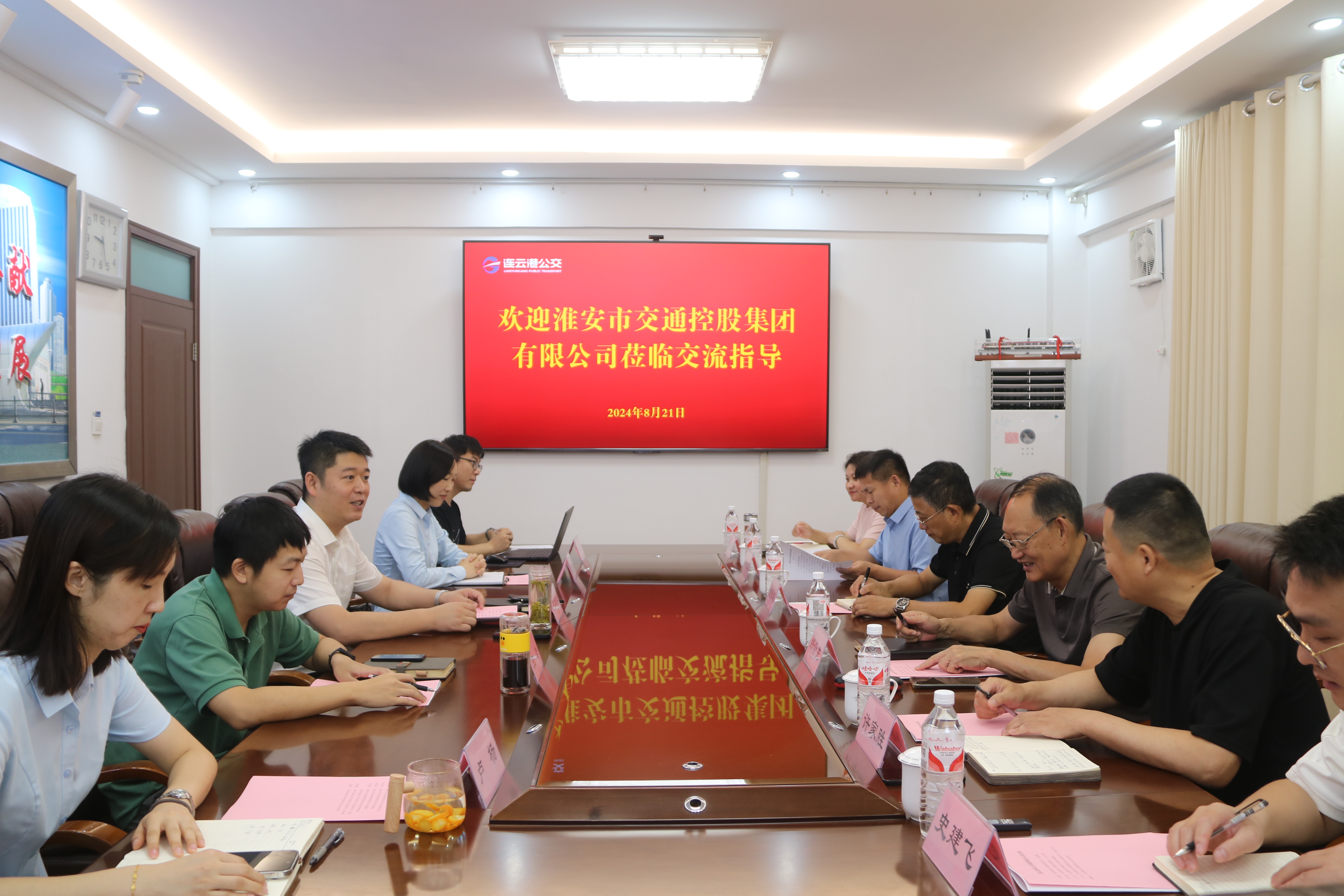 8月21日上午,淮安交控集团外部董事召集人姚家福一行6人莅临公交集团交流学习。公交集团党委书记、总经理王学兵、党委委员、工会主席李楠及相关部门负责人参加了座谈交流会。