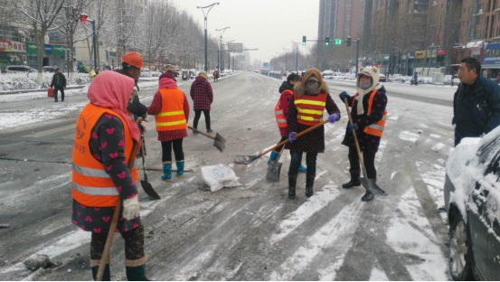 项目部于4日晚八点,安排人员泼洒融雪剂,共计十吨融雪剂全数用尽。次日凌晨,项目部员工拿起铁锹和扫把,全力开展清雪防滑工作,以确保道路安全畅通,为市民日常出行清除障碍。一些员工用铁锹向两边清理积雪,另一些则在后面奋力用大扫帚扫雪,积雪溅在衣服和鞋上都毫不在意,大家越干越起劲,现场一派繁忙。
