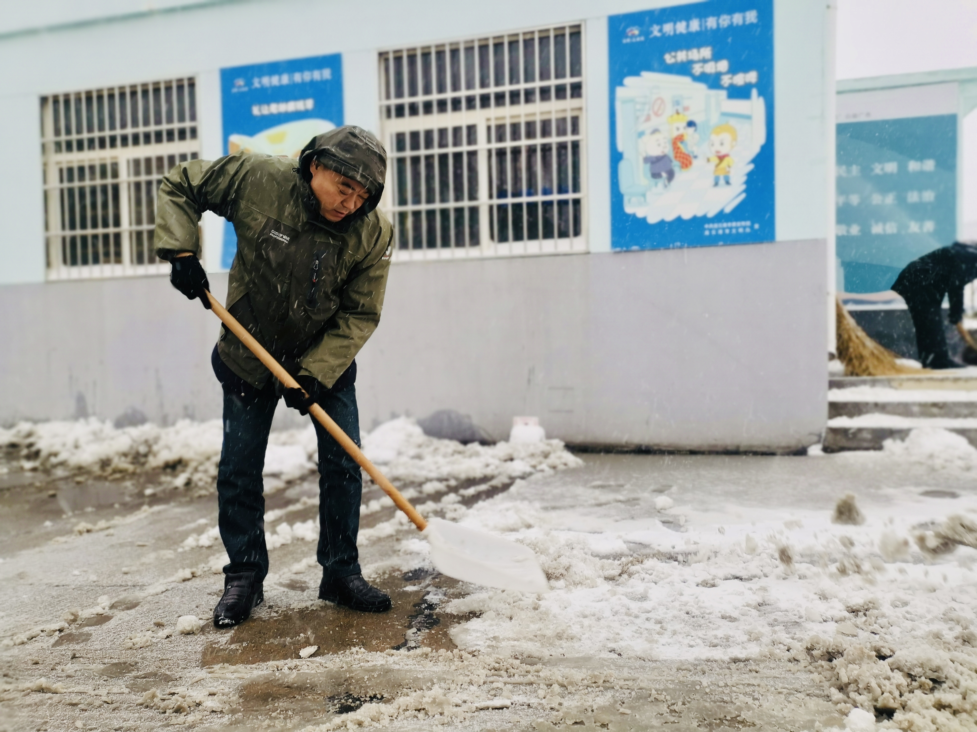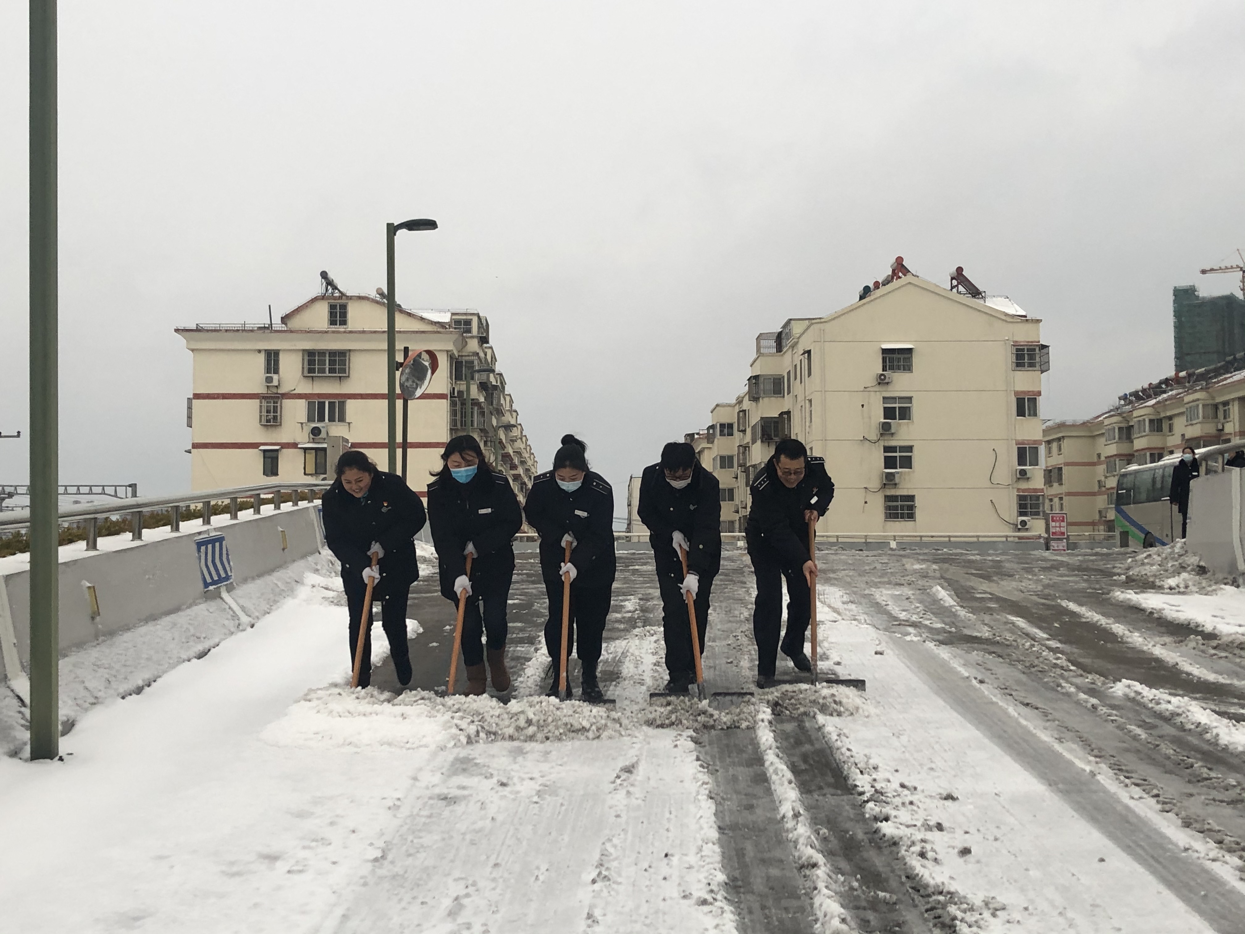 各单位提前谋划,召开专项工作部署会,启动冰冻天气应急预案,做好相关扫雪工具的发放,及时组织工作人员扫雪铲冰。