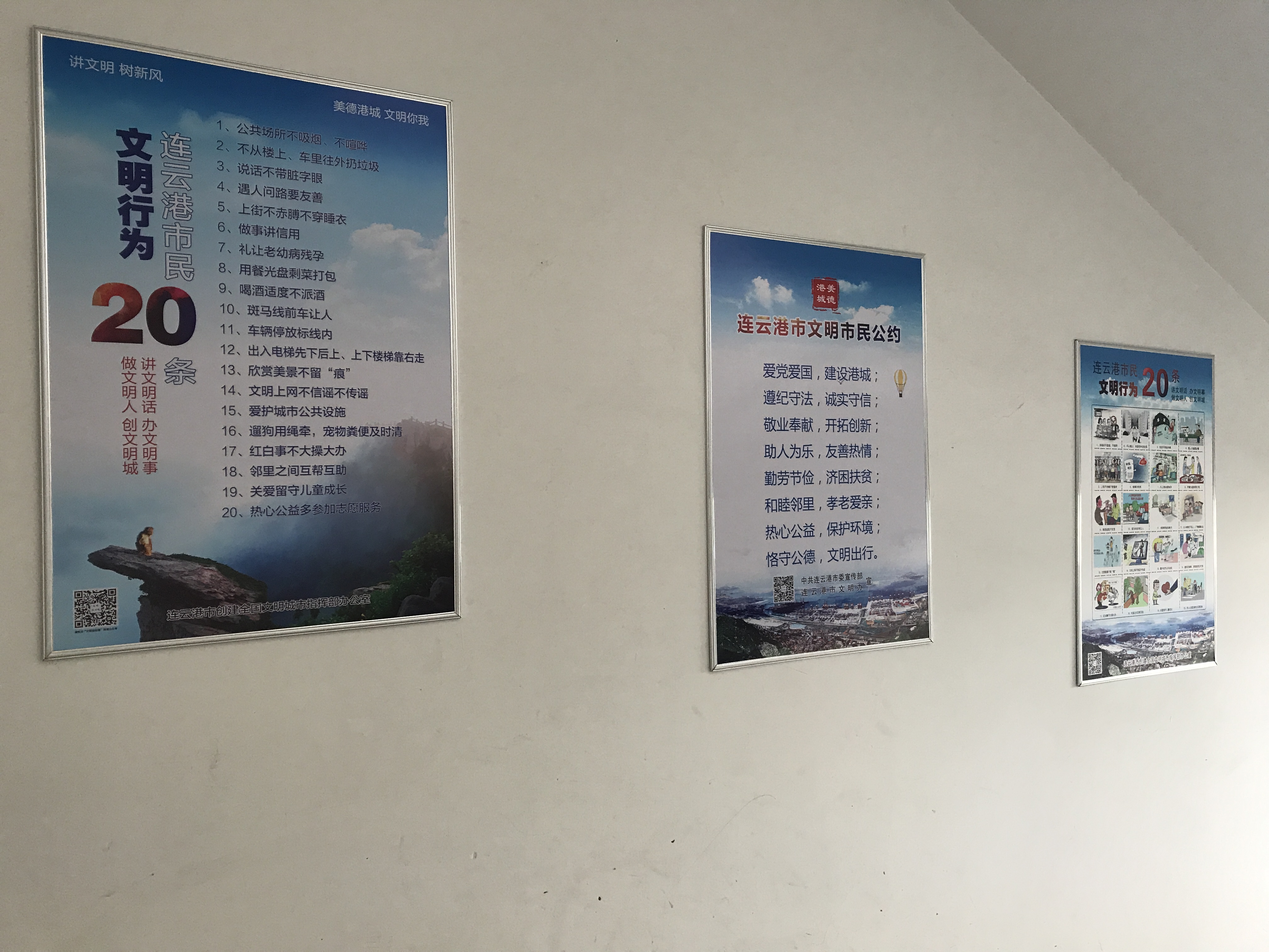 7月5日,新安装的《连云港市民文明行为20条》、《连云港市文明市民公约》、《连云港市民文明行为20条图片》等宣传海报,吸引众多职工驻足观看。走廊上“社会主义核心价值观”、“讲文明树新风”等有关内容让职工们在不经意间接受心灵的洗涤。