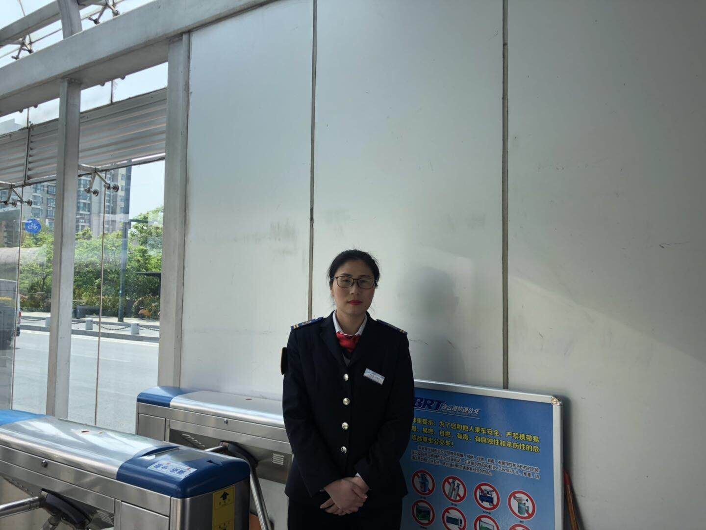 五羊路是一个大型中转站,每天换乘的乘客特别多,由于靠近连云港东站,经常遇一些外地乘客询问线路走交集团向的问题,站务员孙晓婷总是耐心地给乘客反复解释,讲明公交线路,每逢大型假期之后,她的嗓子总会沙哑几天。
