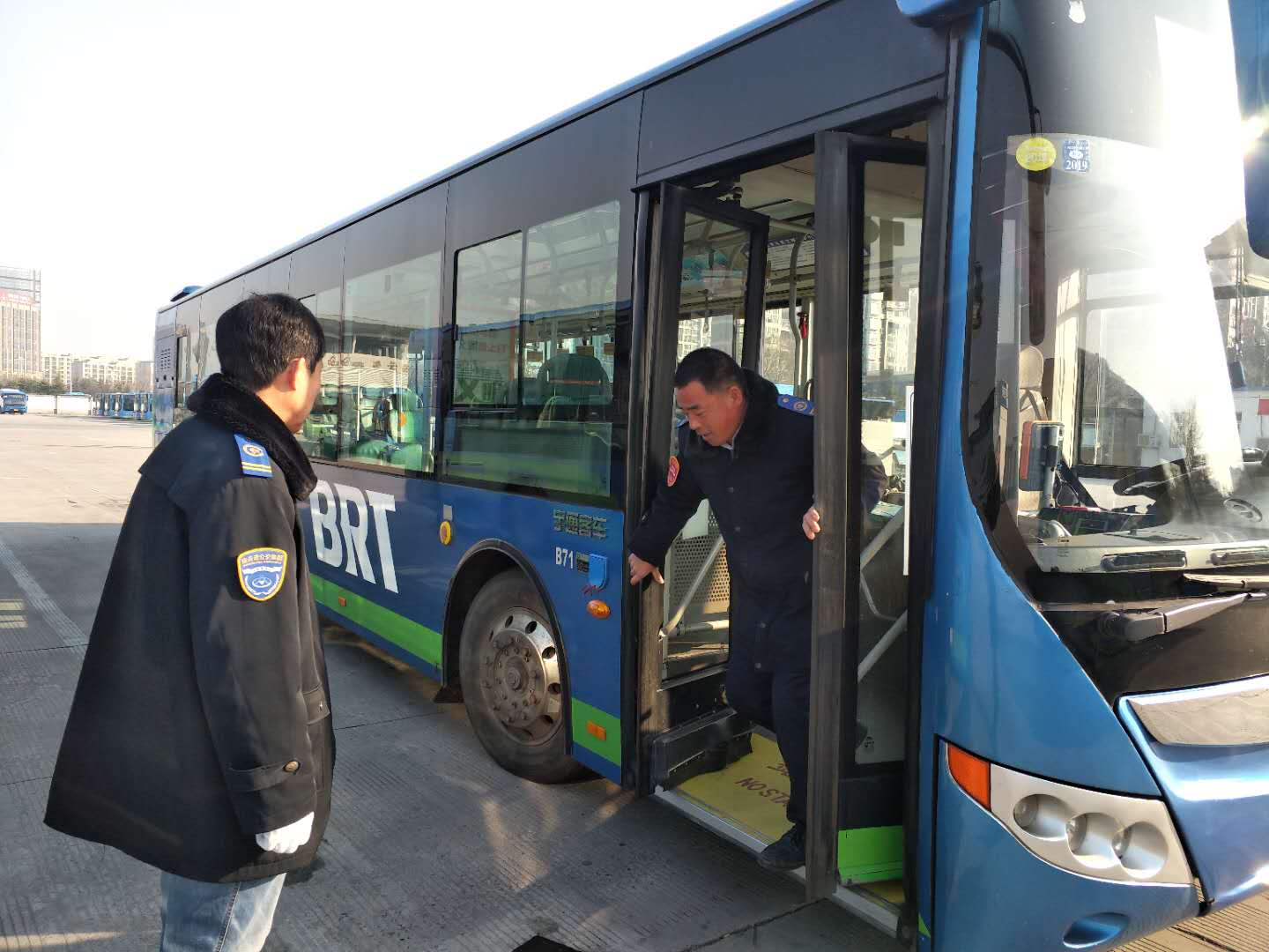 公交集团快速公交事业部要求各场站安机人员做到发现问题现场整改,力求隐患无死角,人员无遗漏。在BRT站台除了常规安全检查外,安管人员还对站务员进行了突发事件应急能力进行再培训,让站务员做到第一时间用正确方法解决安全问题。在各公交场站,公交集团快速公交事业部要求驾驶员利用发车间隙,检查车辆玻璃自爆器是否安装到位,并对车载灭火器维护情况进行定期检查。