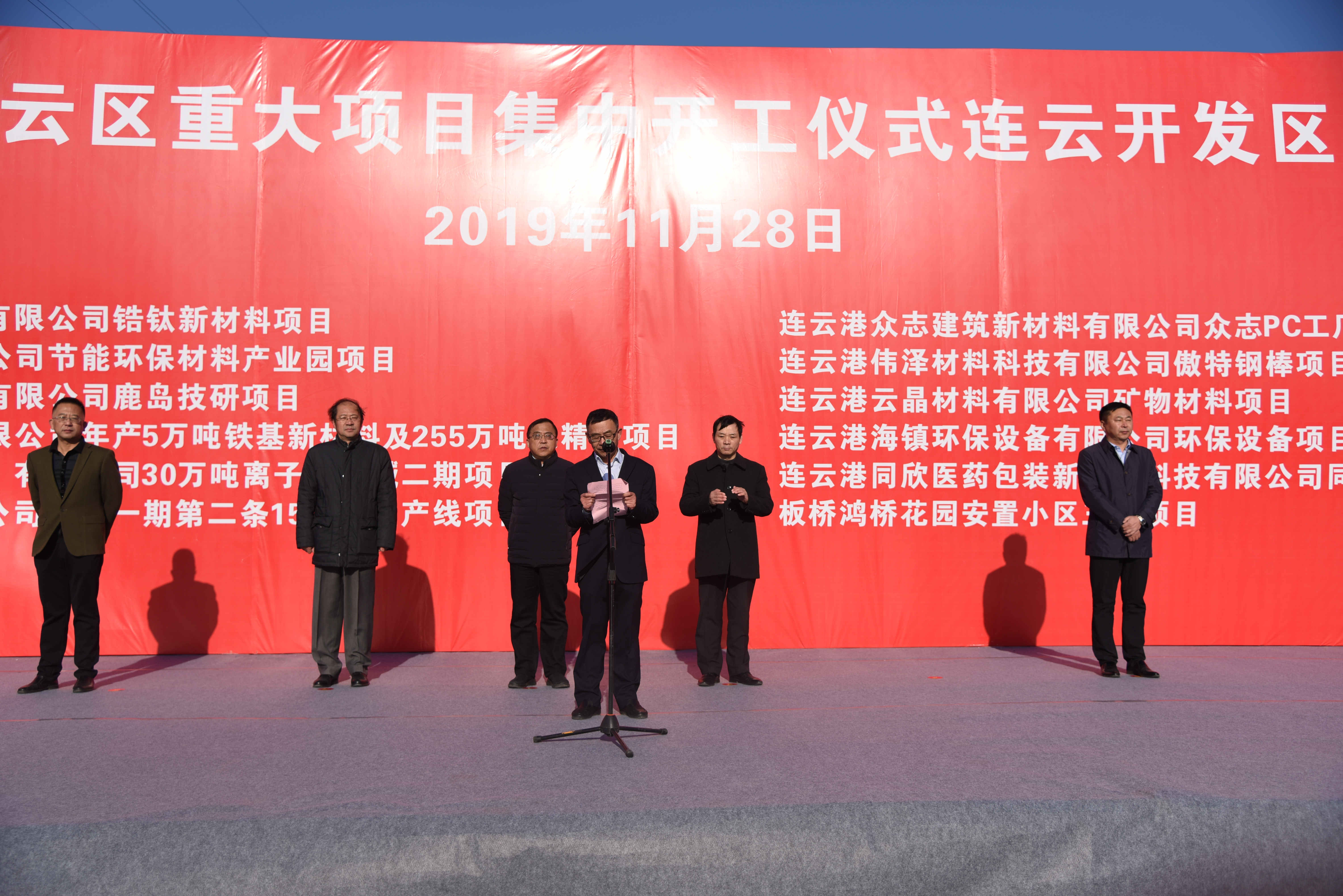 11月28日,2019年连云区重大项目集中开工仪式于海通建筑材料节能环保产业园举行,此次共有12个重大项目集中开工,涉及新材料、新能源、新制造等领域,连云区政协主席李君生,连云区委副书记于洪雁,连云开发区党工委书记苏军、交通控股集团副总经理孙超等出席活动。
