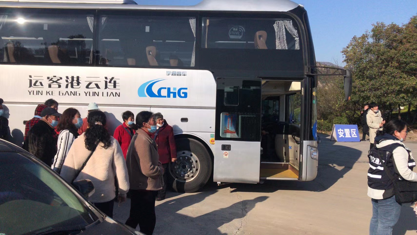 朱亮手拿喊话器:同志们,接上级通知,TW核电站发生事故,现在我们要保障周边居民安全有序的撤离。途中,连汽客运事业部与上级领导通过图片、视频的方式进行连线汇报,到达高公岛街道公众撤离集结点,组织群众紧张有序上车,满员后开走,并开到洗消的地方后人下车洗消,并将人员安全送达安置区,圆满完成核应急交通运输保障公众撤离演练,上级领导对客运事业部的快速反应和精神斗志表示赞许。