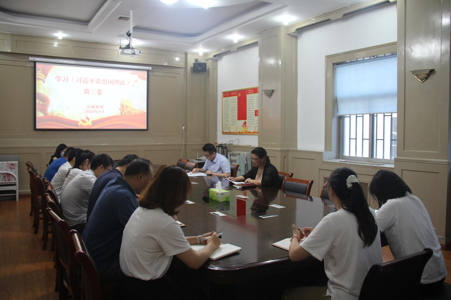 8月28日下午,交通集团党支部组织召开专题会议学习《习近平谈治国理政》第三卷,集团领导班子成员、中层干部和全体党员参加会议。