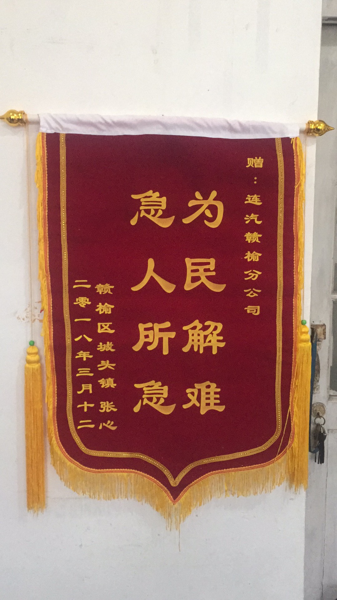3月16日,赣榆公司收到一位旅客从外地寄送的锦旗,感谢为其找回遗失的物品。