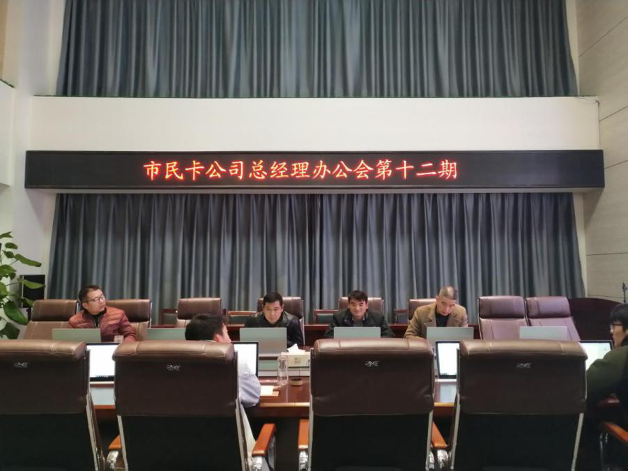 11月28日下午,市民卡公司总经理袁军召集副总经理宁宇、总经理助理陈琛在公司视频会议室召开第十二期总经理办公会,研究近期重点工作。交控集团纪检监察二组组长徐大江到会并参与讨论决策,公司财务审计部、市场服务部、安全信息部、综合办公室各事项负责人列席会议。