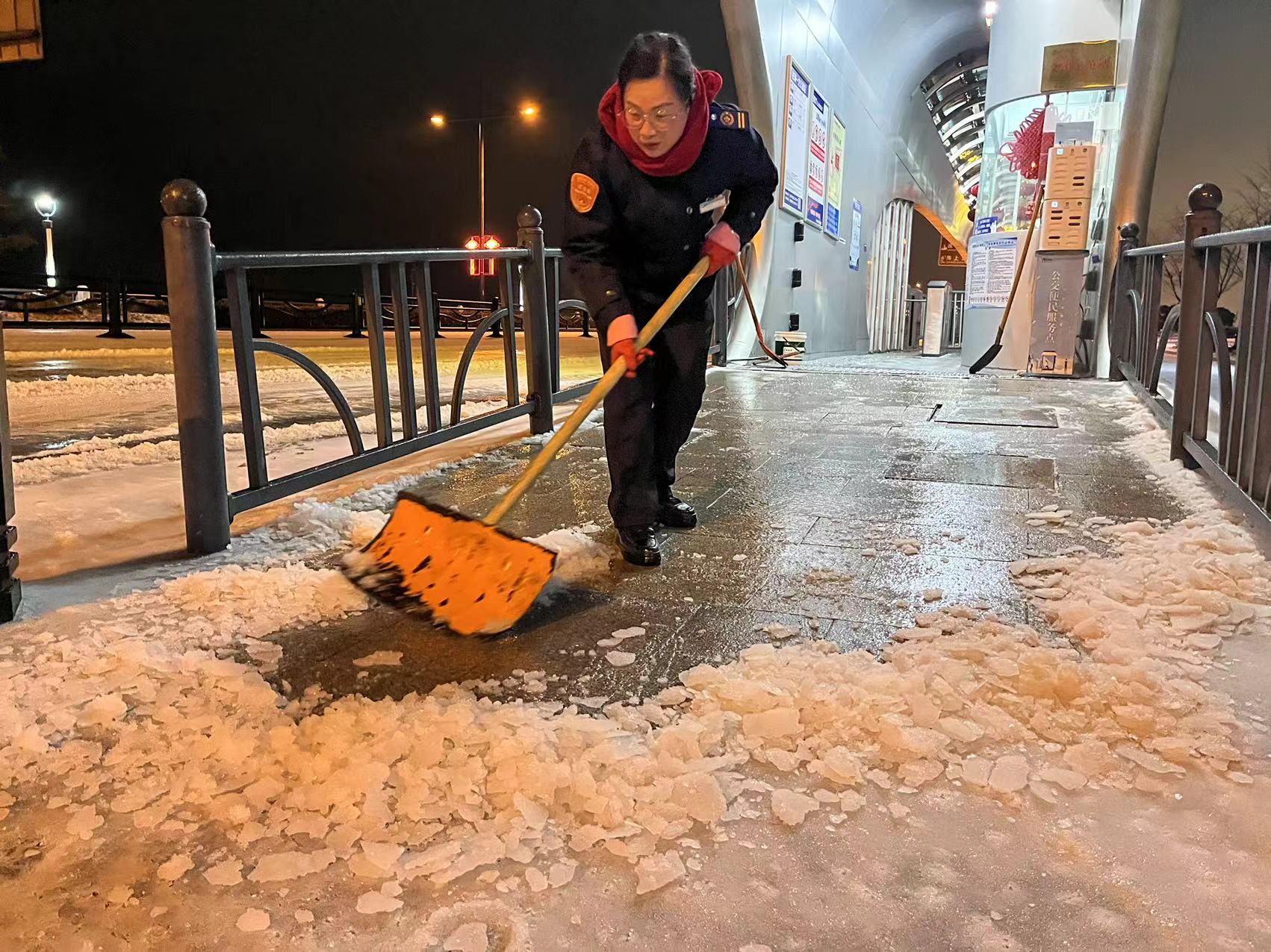 21日早6时50分,客运枢纽除雪防滑工作已满足旅客出行基本条件,早8时,枢纽全域除雪防滑工作全面完成。时值元宵前出行高峰期,交通集团做好客运枢纽低温雨雪冰冻应急处置工作之余,在志愿服务、安全保障、客流疏导等方面继续优化,在港城大道、海鸥广场、繁荣路、创意716文化街区等人流车流密集场所下足功夫,以时不我待的紧迫感、舍我其谁的责任感,一鼓作气、一着不让、一抓到底,全力保障市民旅客安全、便捷、舒适出行。