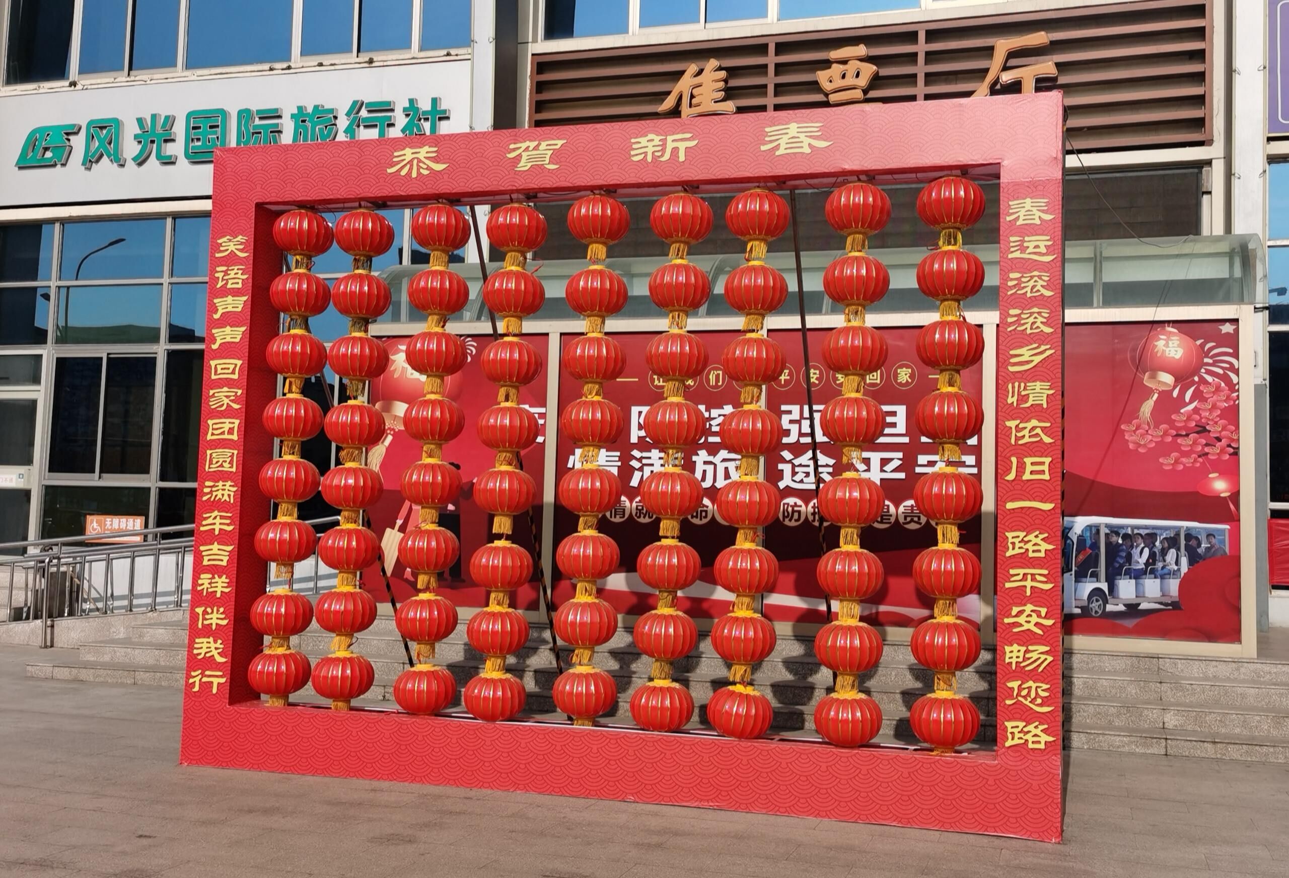红红火火的灯笼墙树立在车站广场,喜气盈盈的拉花点缀在候车厅的各个角落,一抹抹“中国红”将车站装点的靓丽多姿,让整个车站都弥漫着传统文化的气息,营造出欢乐、祥和的节日氛围。旅客们纷纷点赞,表示在客运站内感受到了浓浓的中国年味。