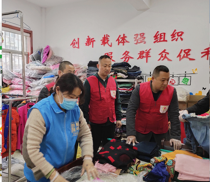 2021年4月25日,交培公司驾培事业部党支部来到玉带社区“爱心小屋”开展志愿服务活动。本次活动的主要任务是整理社会捐赠的1500件棉衣,活动中,按照社区书记的统筹指挥,大家分工明确,分类、整理、打包、统计,有条不紊的进行着……团结就是力量,堆成小山一样的衣服,在大家的共同努力下,按照分类整齐的排列在货架上。