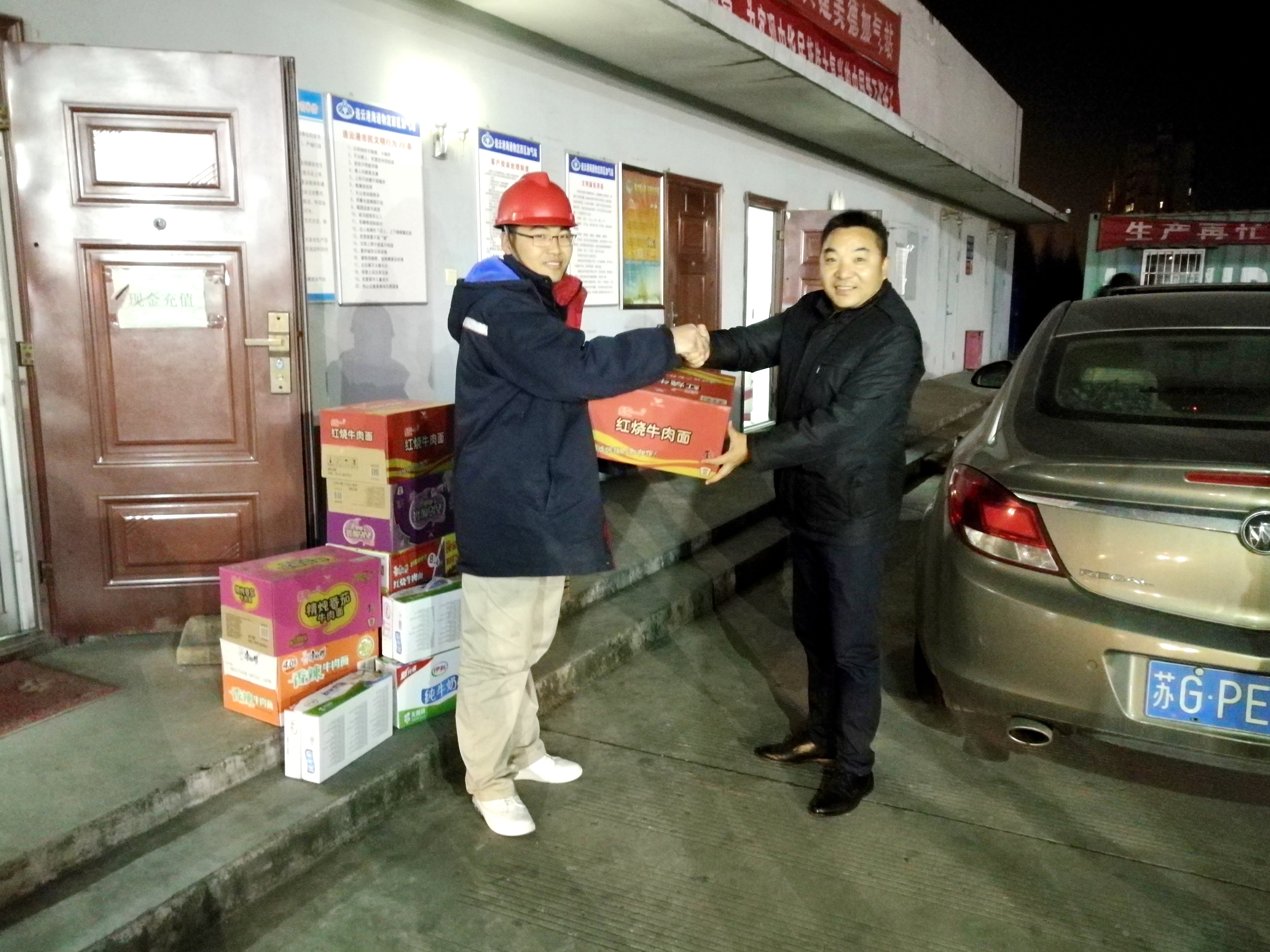 寒冬来临之际,在加气站全力保供的特殊时期,坚守在加气一线的员工时刻牵动着公司领导的心。公司领导在给一线员工送来了牛奶、泡面、面包、火腿肠等慰问品的同时,叮嘱大家注意保暖,保重身体,牢固树立安全意识。号召大家在全力保供的特殊时期,人员紧张、工作量剧增的情况下,大家一定要齐心协力,共同奋战。