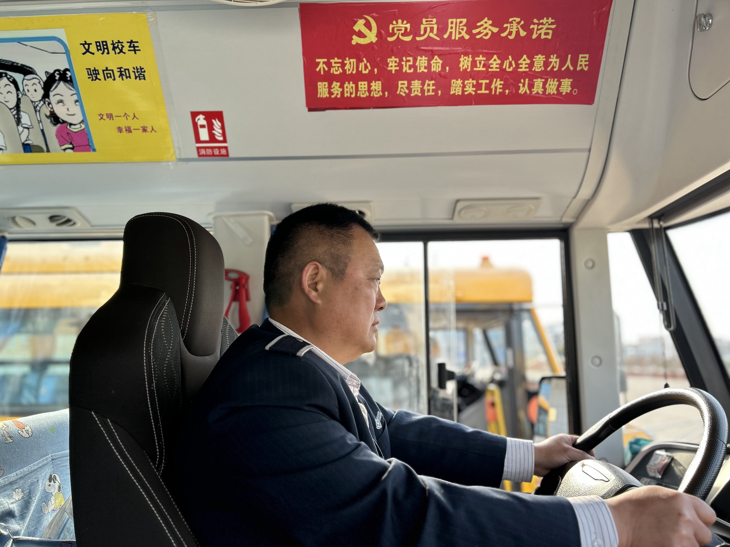 徐恒卫说:“退役不褪色,军人的优良作风不能忘。在部队时身着军装手握钢枪,是为了保卫人民的和平生活,在校车上身着工装手握方向盘,是为了保障学生的平安出行,我时刻以党员身份要求自己,关心呵护每一位乘车学生,向学校和家长展示灌云欣达校车良好的服务形象”。