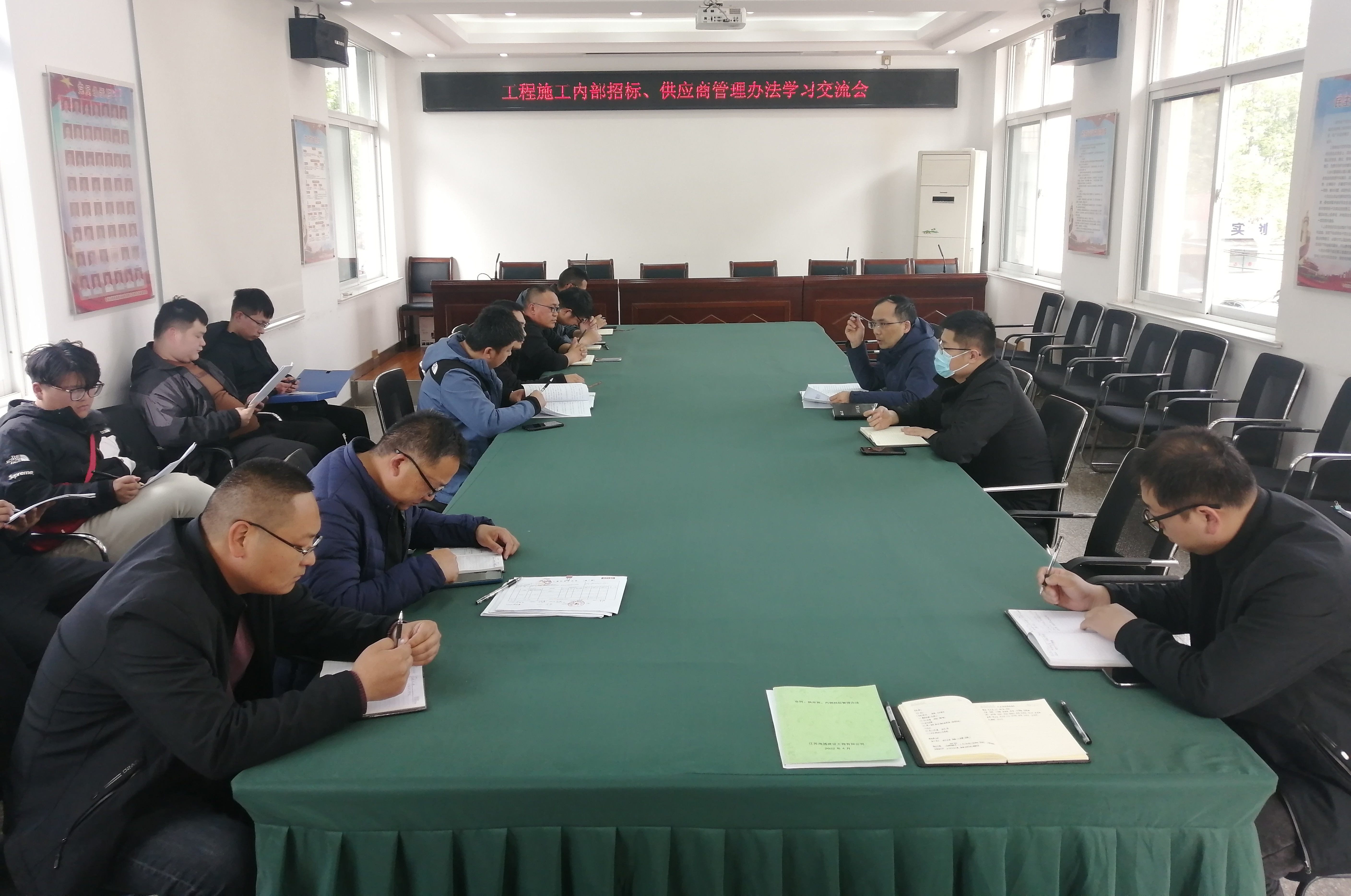 本次学习交流会由公司合约部(法务部)部长邢长生主持,内容是对两个管理办法的再学习,重点学习了工程施工内部招标及供应商管理工作中各参与单位、部门及人员的职责,以及项目内部招标方案编制、供应商资格审查、评标委员会成员抽取、招标资料整理保存、供应商入库和评价等业务规定。
