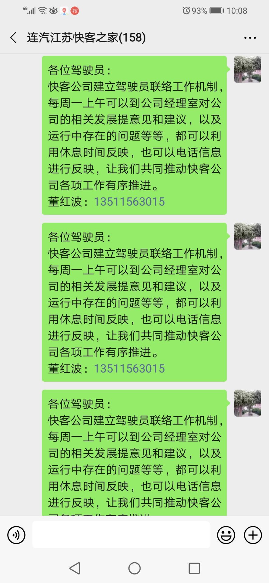 快客公司建立驾驶员联络沟通工作机制,公布了经理手机号码和微信,驾驶员每周一上午可以到经理室对公司的相关发展提意见和建议,包括车辆在运行中存在的问题等都可以反映,也可以电话或信息进行反映,以此来共同推动快客公司各项工作的有序推进。